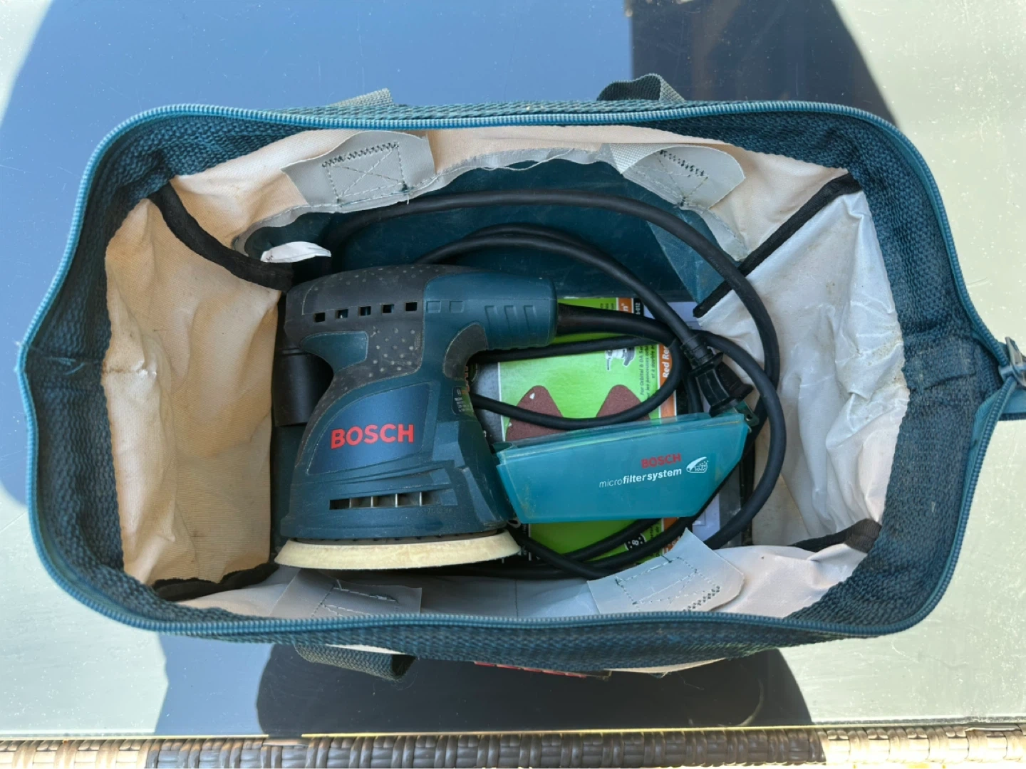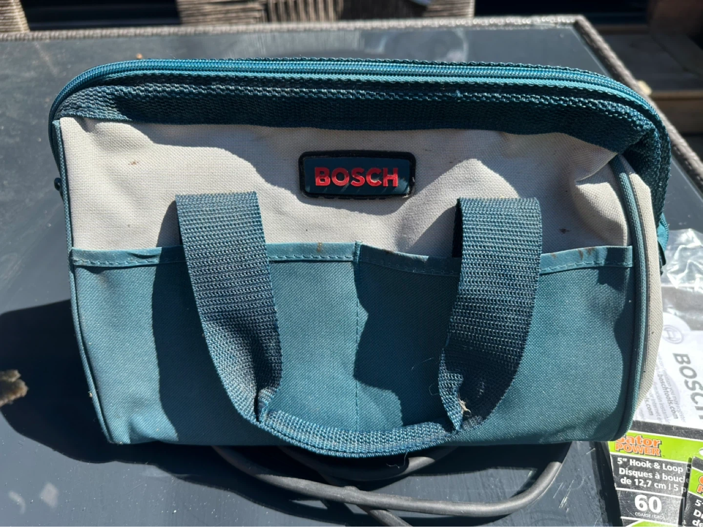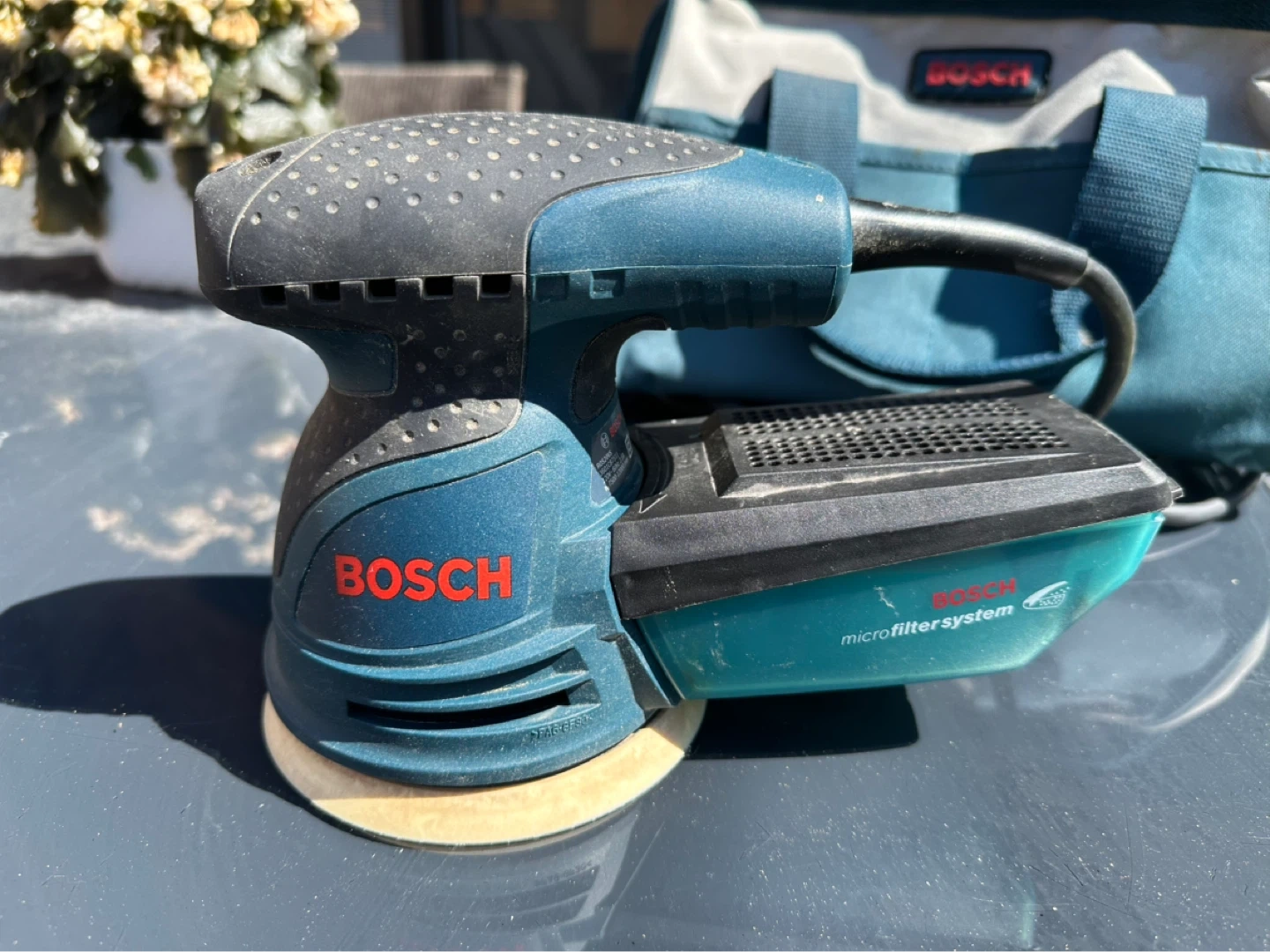 Bosch ROS20VS random orbit sander with microfilter system. Includes original storage bag and several sanding discs.