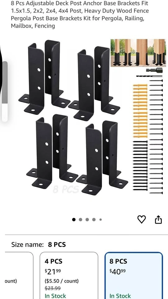 New 8 Pcs Adjustable Deck Post Anchor Base Brackets Fit 1.5x1.5, 2x2, 2x4, 4x4 Post, Heavy Duty Wood Fence Pergola Post Base Brackets Kit for Pergola, Railing, Mailbox, Fencing