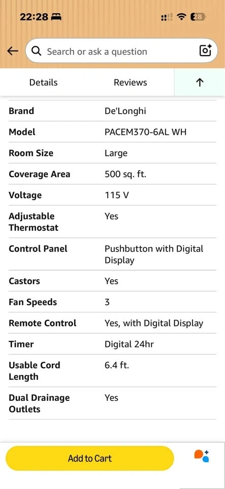 Selling a DeLonghi portable air conditioner (Model: PACEM370-6AL WH). Used for 1 year, in excellent condition and works perfectly. Covers up to 500 sq.ft (good for large rooms) with strong cooling performance. It's clean and well maintained. Comes with remote control and exhaust hose. Easy to move with wheels. This unit is like new, no issues. Selling because it's no longer needed. Condition: 9/10 (very clean, fully functional). Pickup only. Serious buyers please.