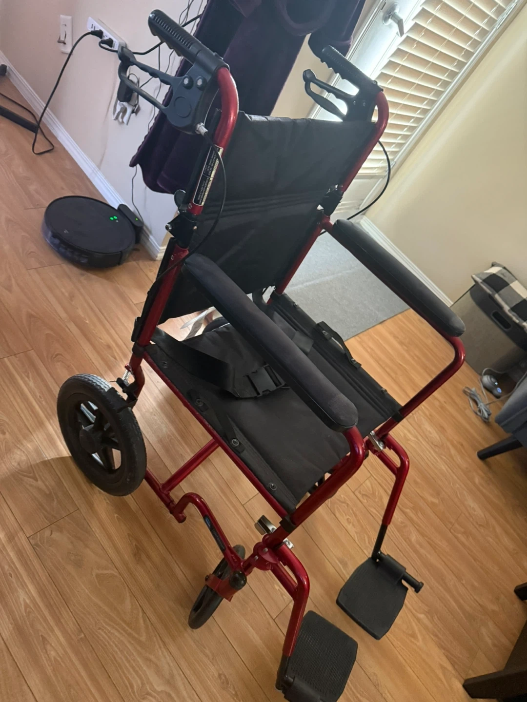Flyweight Lightweight Transport Wheelchair with Removable Wheels, Red