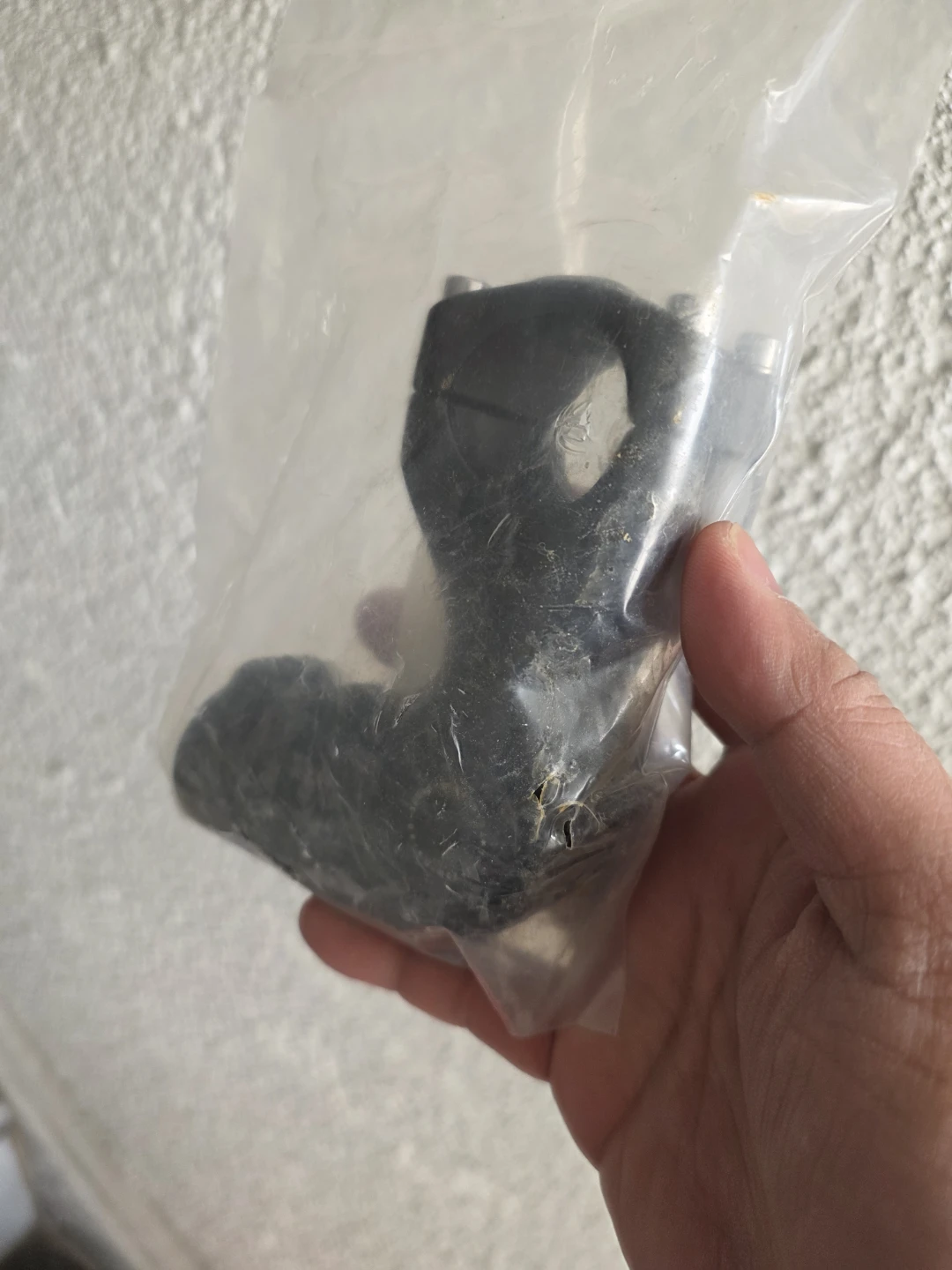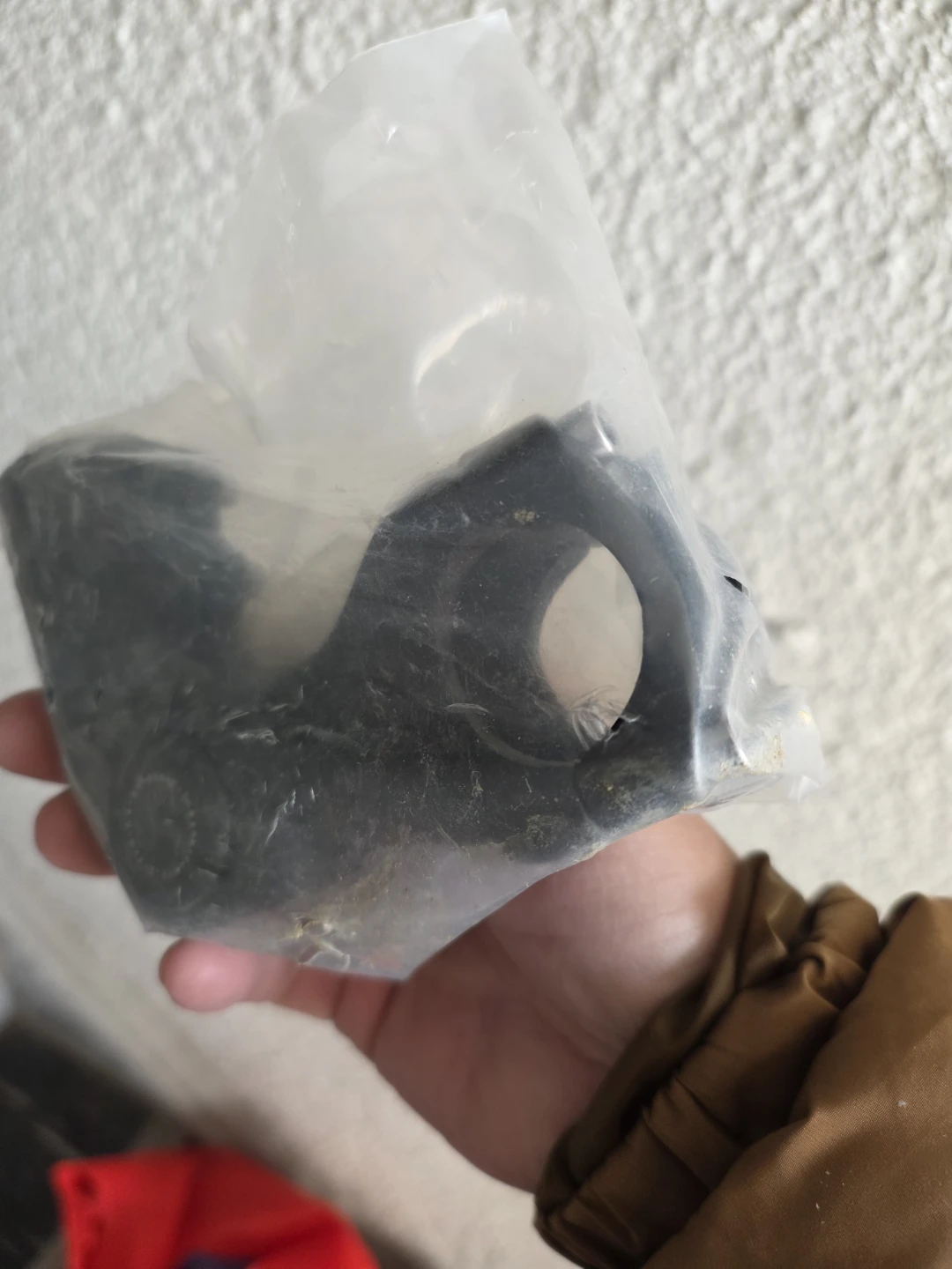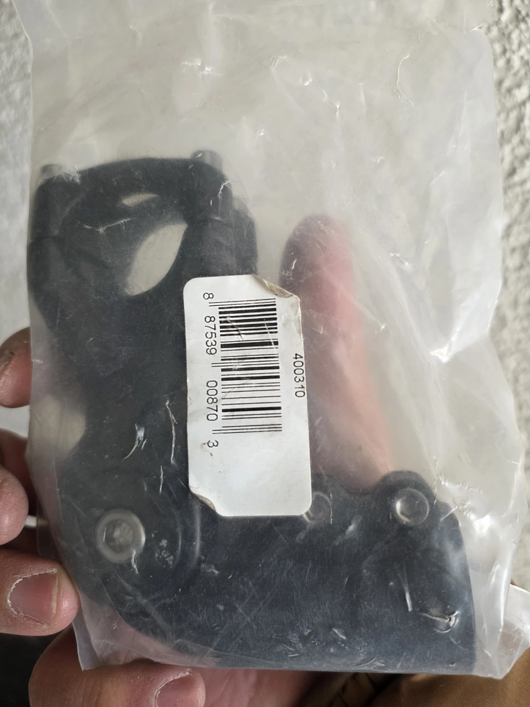 This is a black bicycle stem, likely for a mountain bike. It appears to be made of durable metal. It comes in its original plastic packaging. This stem is designed to connect the handlebars to the fork's steerer tube.