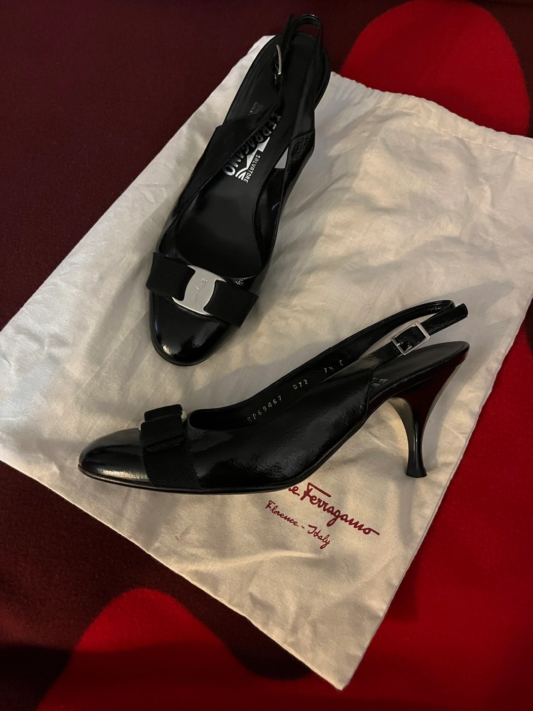 I am selling my authentic and very gently used Salvatore Ferragamo slingback heels, size 7.5. They come with dust bag. Contact me if you’re interested