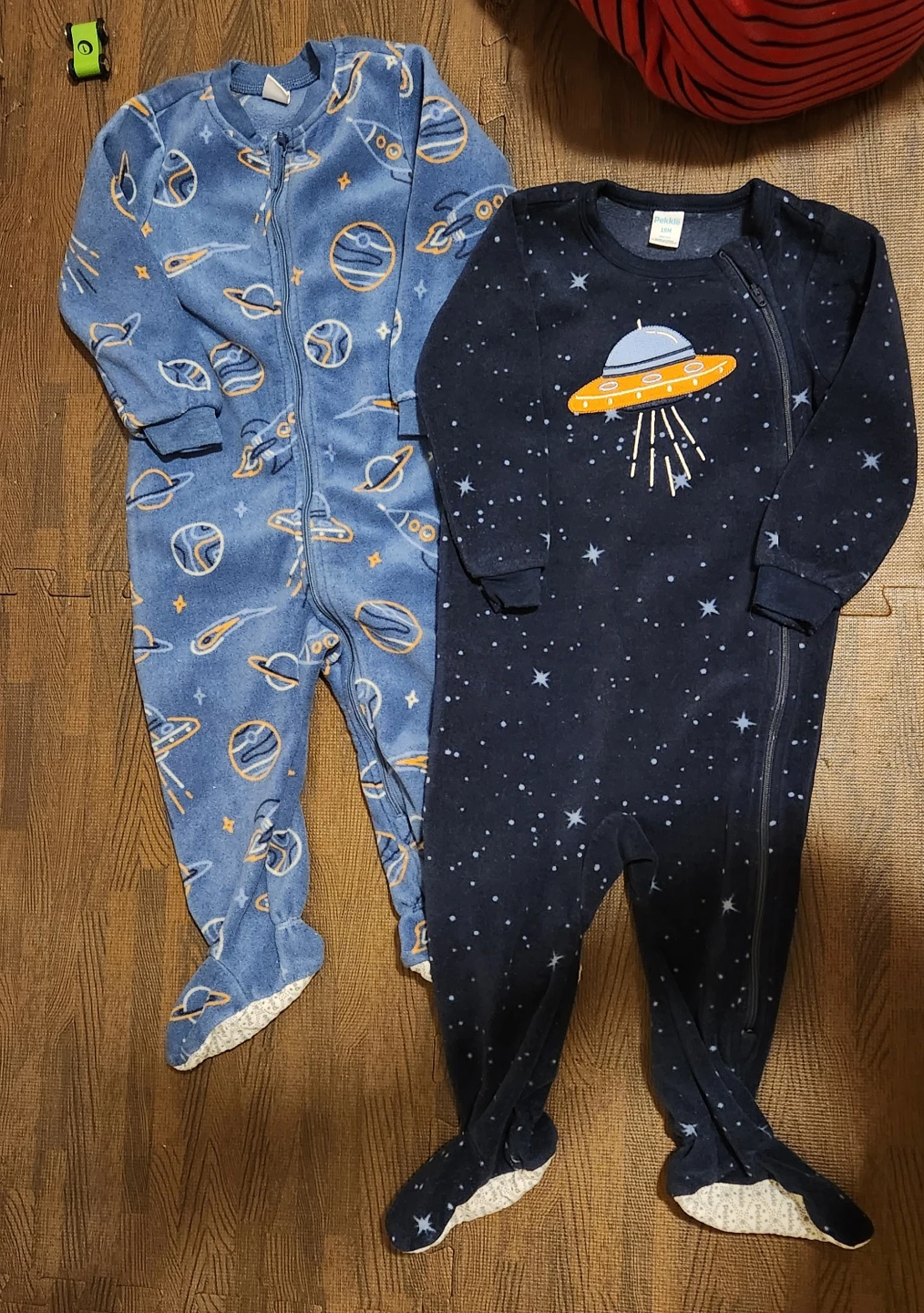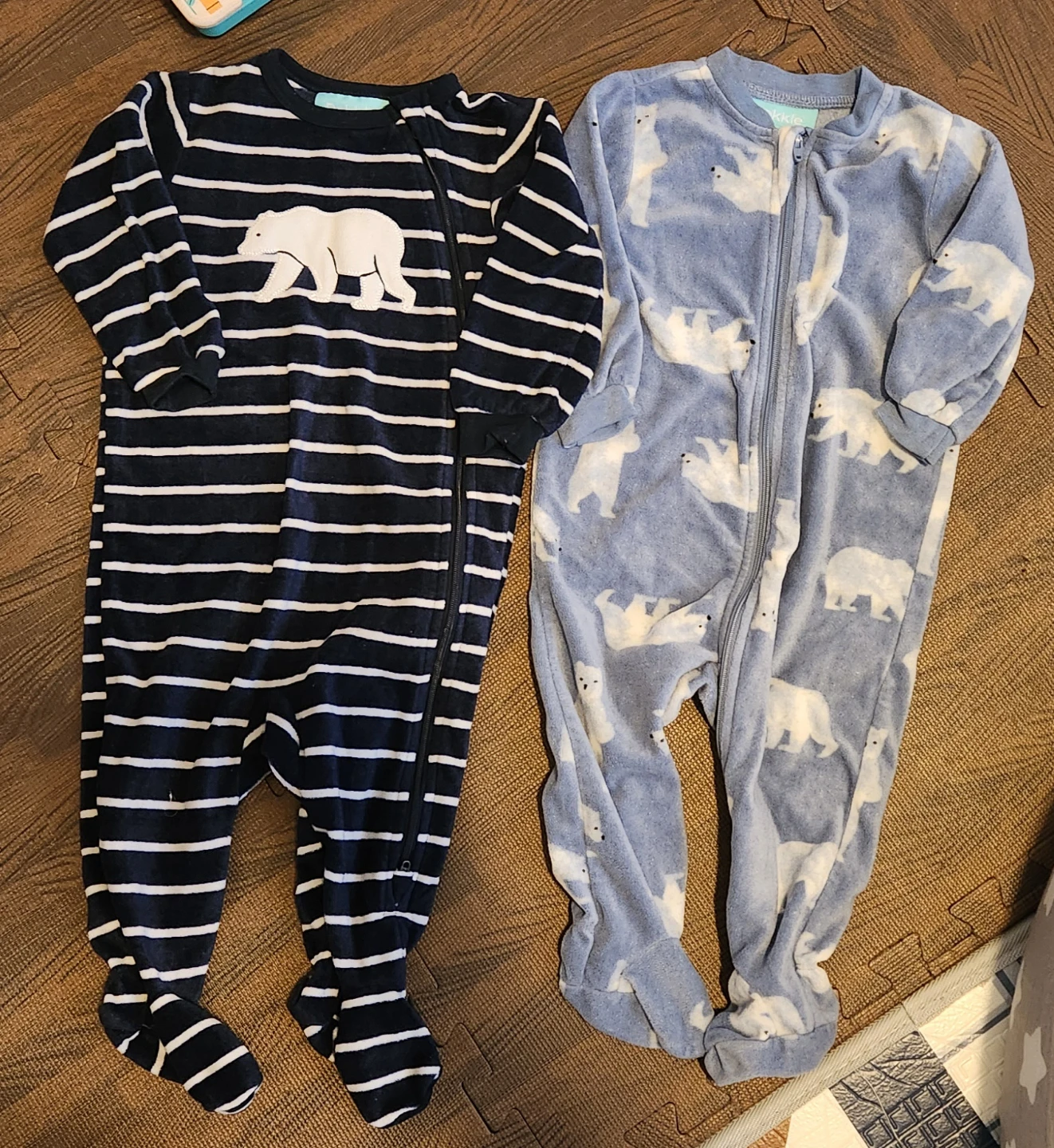 Pic 1) pekkle fleece sleepers 18m new with no tags $15 for both.