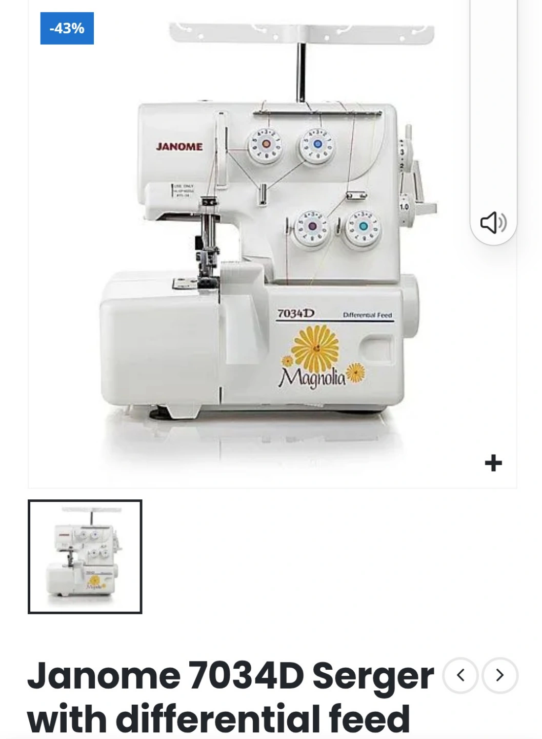 A serger is the perfect machine for creating professional-looking garments. The Magnolia 7034D gives you a wide range of serging features in a compact machine. With easy dial adjustments and 1,300 stitches per minute, you’ll get your projects done quickly and easily. Bring Janome sewing quality into your home with a serger that’s perfectly priced and perfectly sized to fit your lifestyle.
