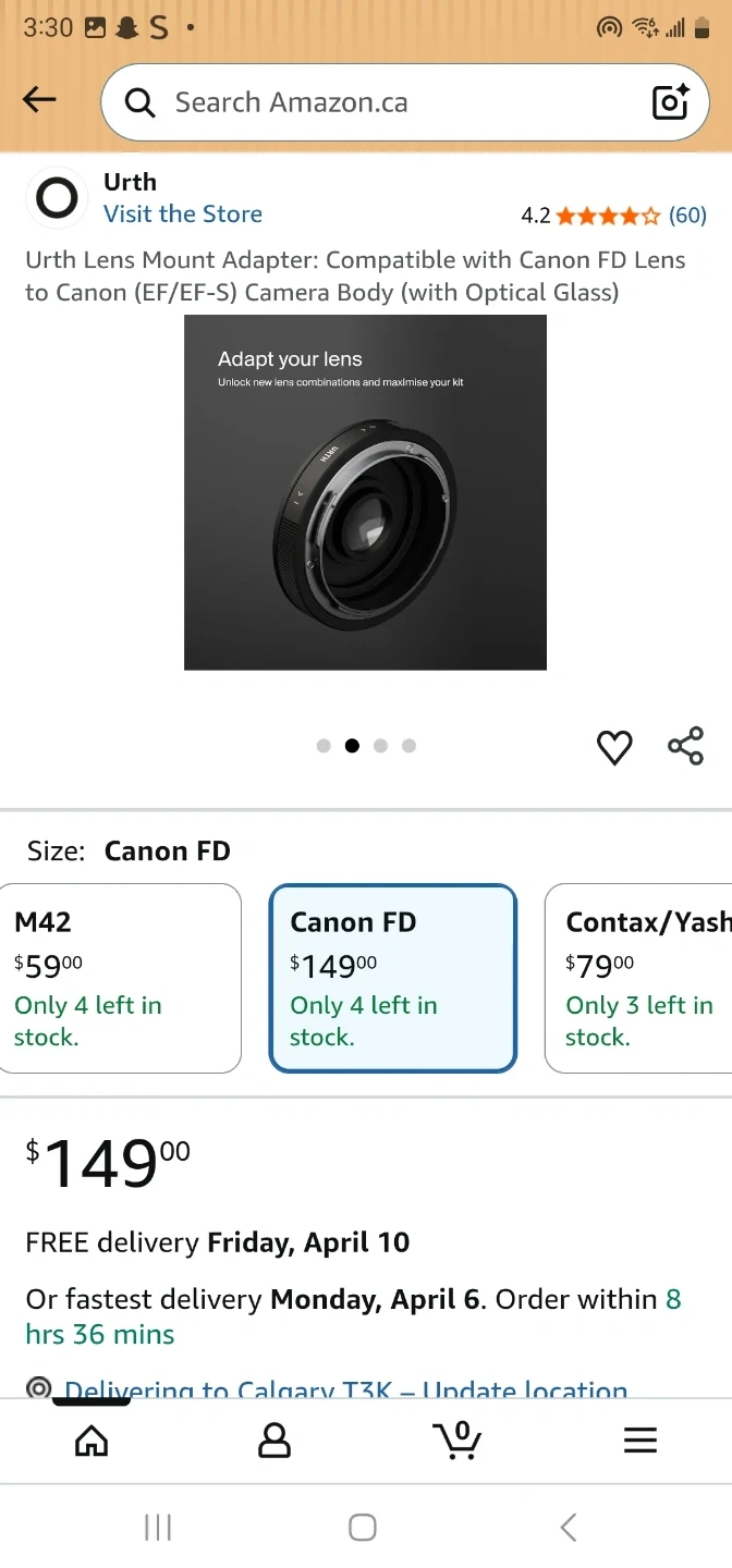 Urth Lens Mount Adapter: Compatible with Canon FD Lens