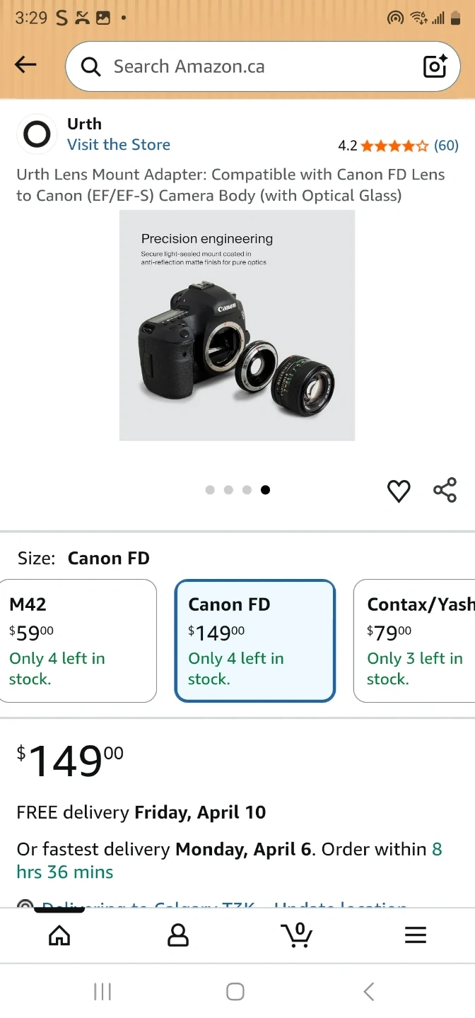 Urth Lens Mount Adapter: Compatible with Canon FD Lens to Ca...