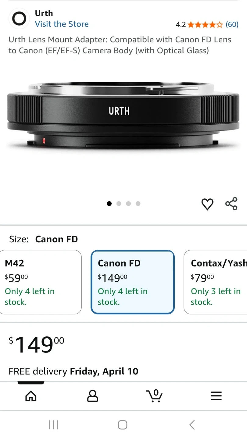 Urth Lens Mount Adapter: Compatible with Canon FD Lens