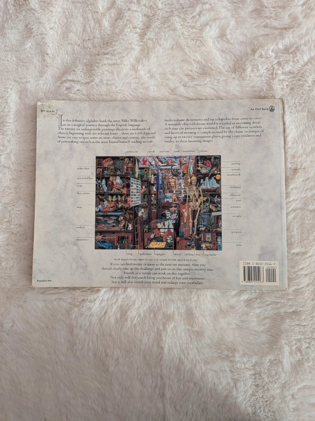 This definitive alphabet book features artwork by Mike Wilks. It's a journey through the English language filled with detailed illustrations. The book contains hundreds of objects to find, making it a fun challenge for all ages. It's great for developing vocabulary and observation skills!