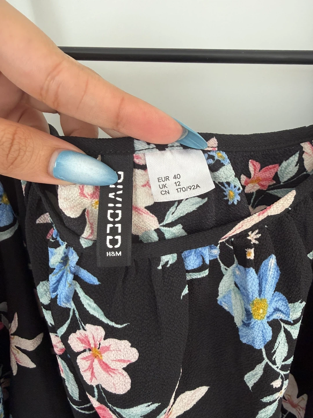 H&M Black Floral Off-Shoulder Dress Size UK 12