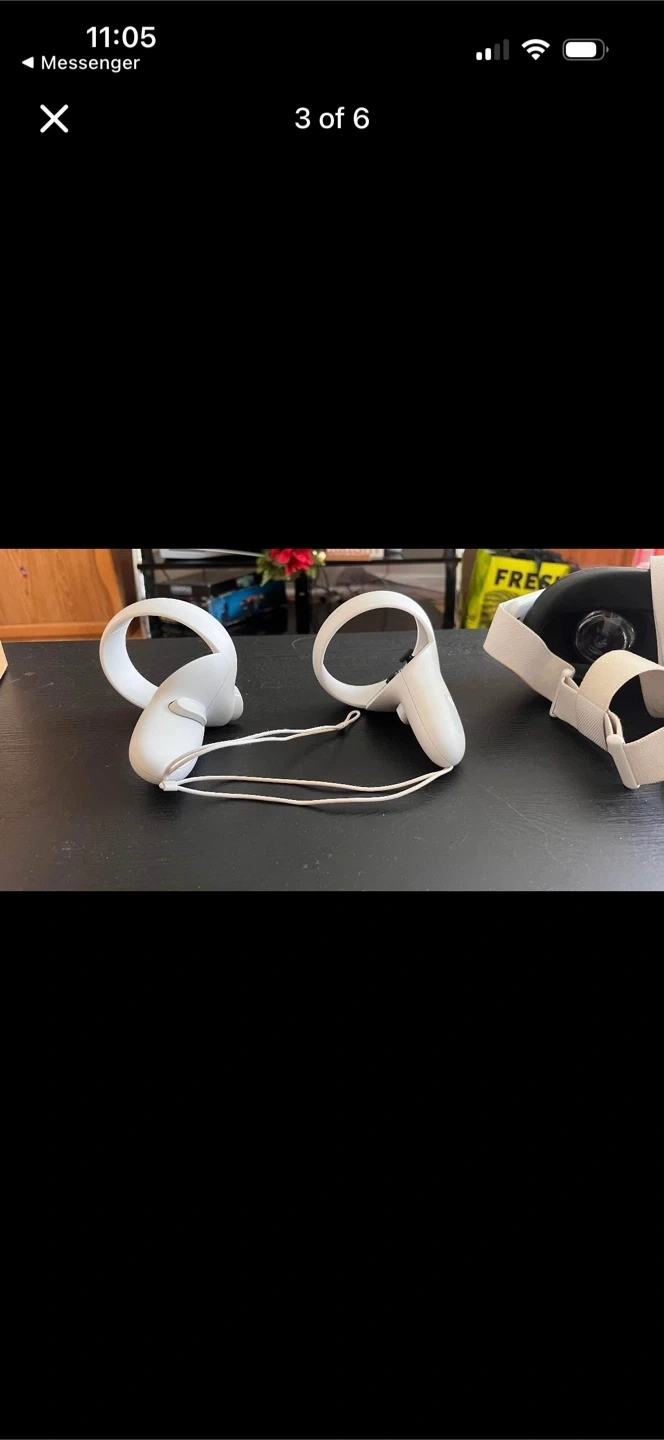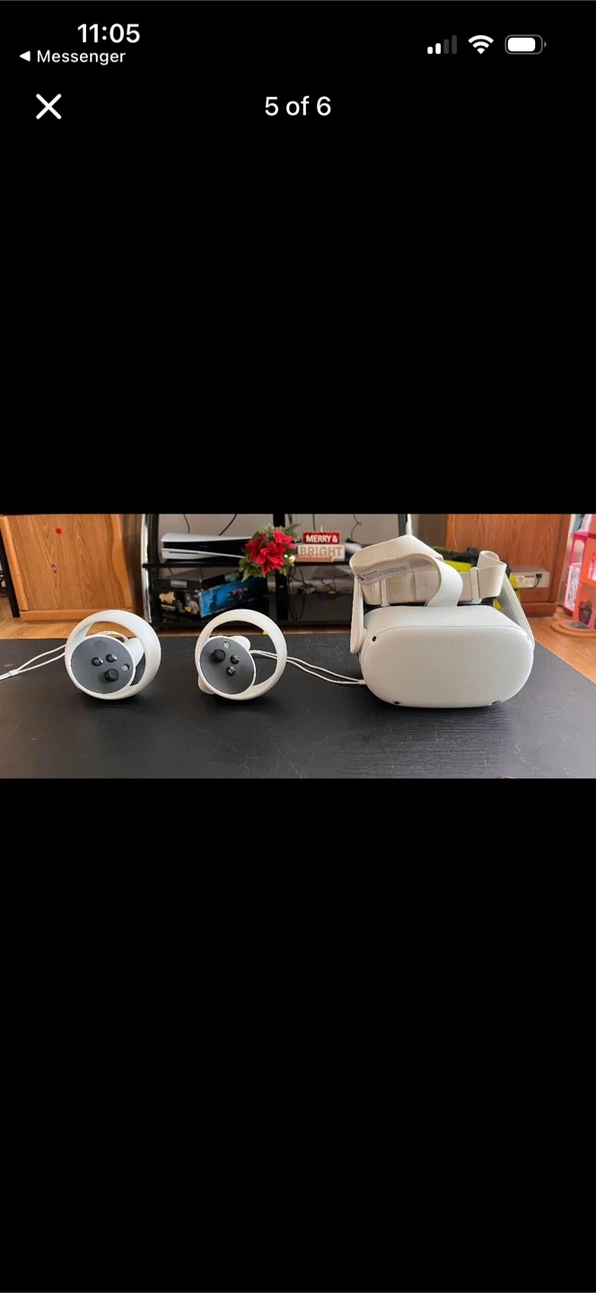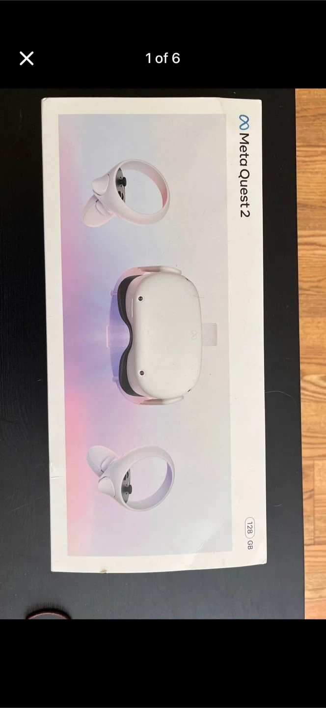 This is a Meta Quest 2 VR headset with controllers and a 128 GB storage capacity. It includes the headset, two controllers, and original packaging. This virtual reality system is great for gaming and immersive experiences.