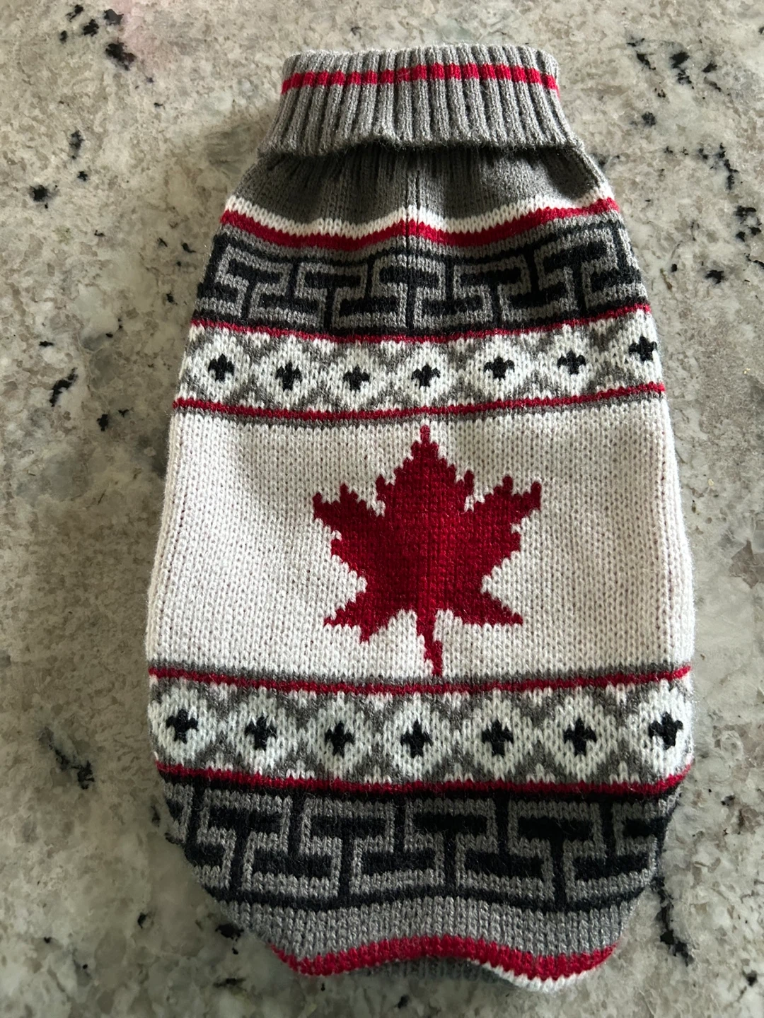 This is a cute pet sweater, size No. 10. It features a Canadian maple leaf design. It's delicate and soft, anti-static and anti-pilling, and skin-friendly! It also has good flexibility. For your mini pet dogs, chihuahua, mini shit tzu, yorkie etc.