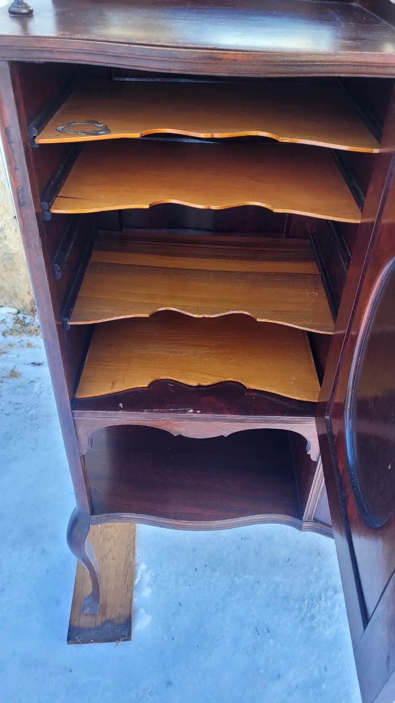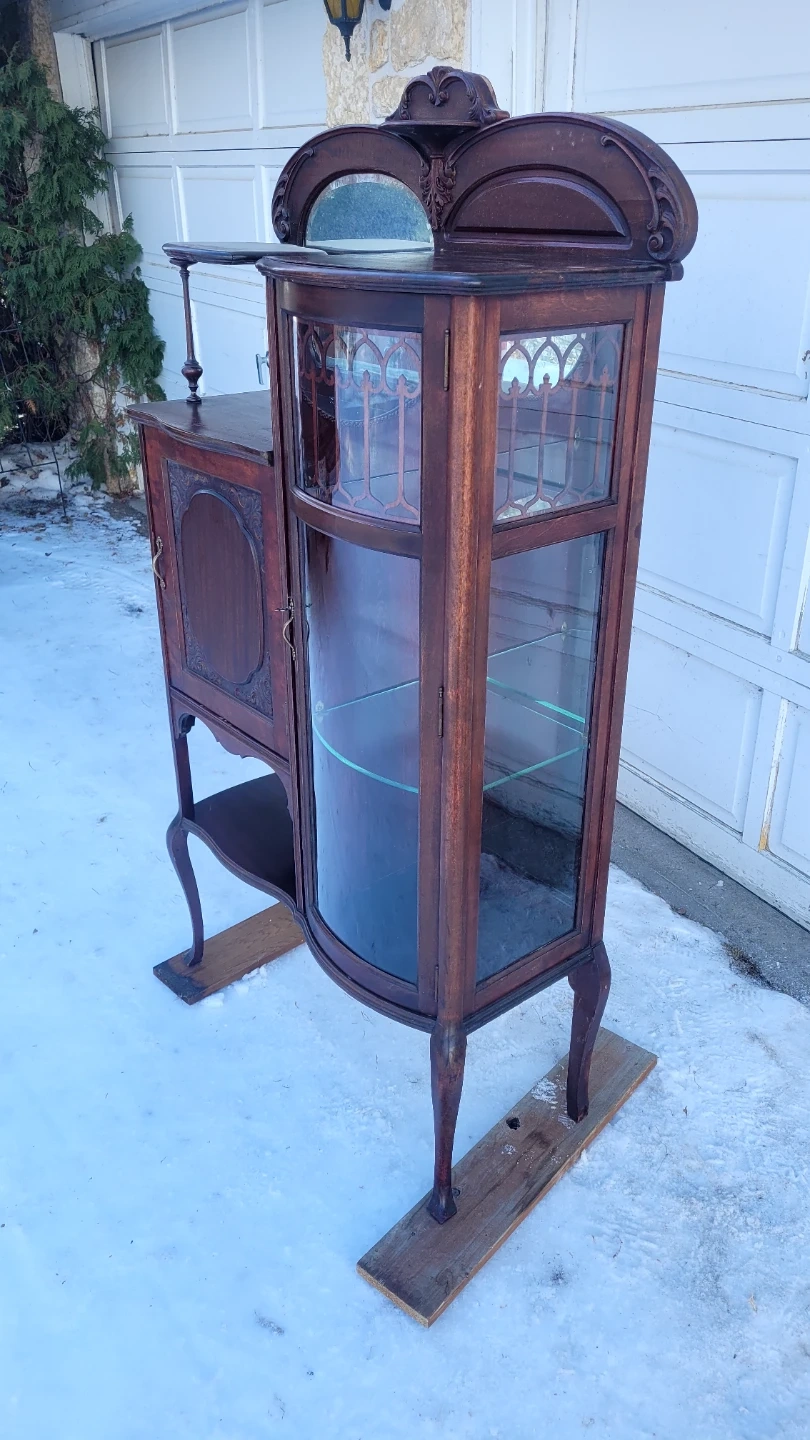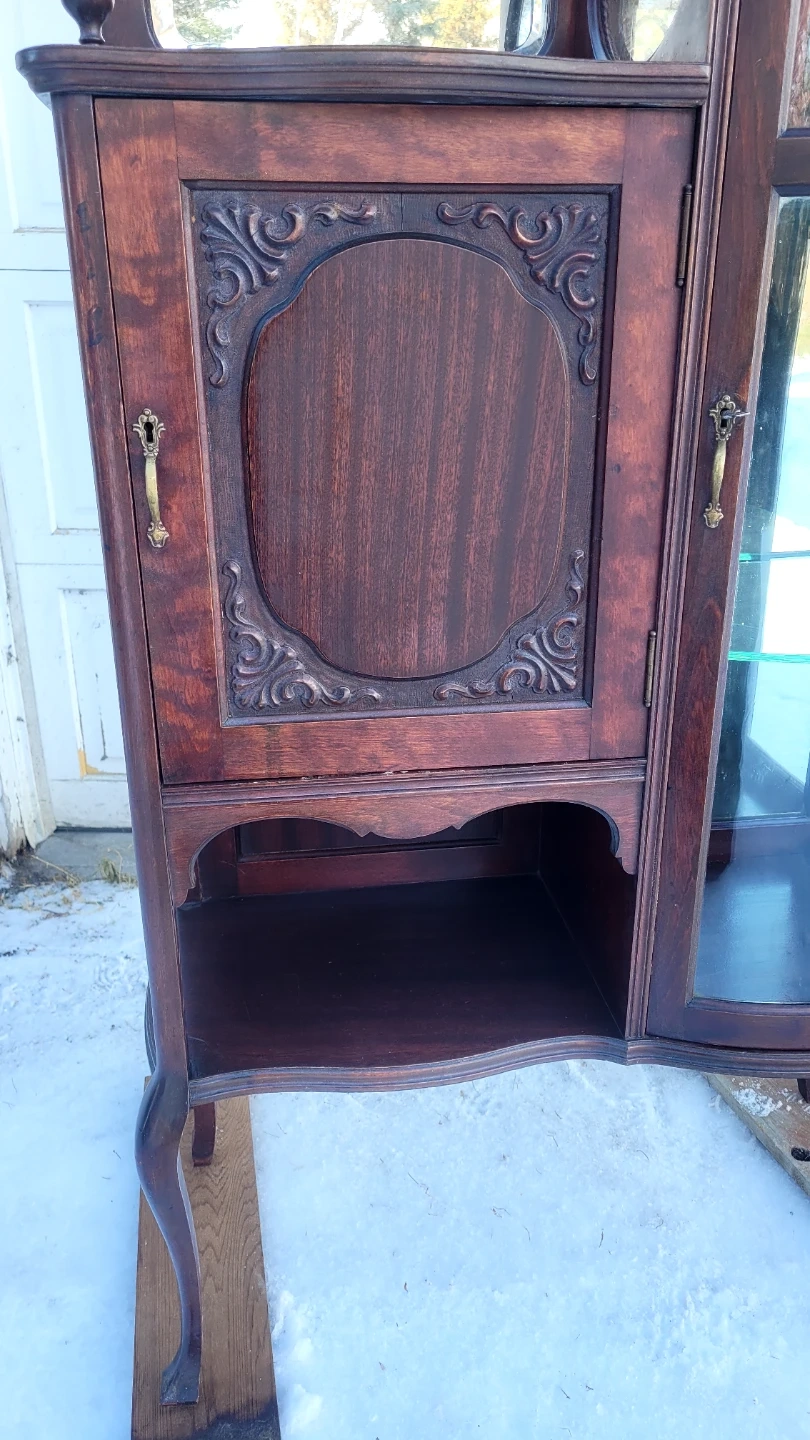 Antique Victorian mahogany display cabinet with record storage. Both doors lock (comes with skeleton key). In pretty good condition but the top could use some work.