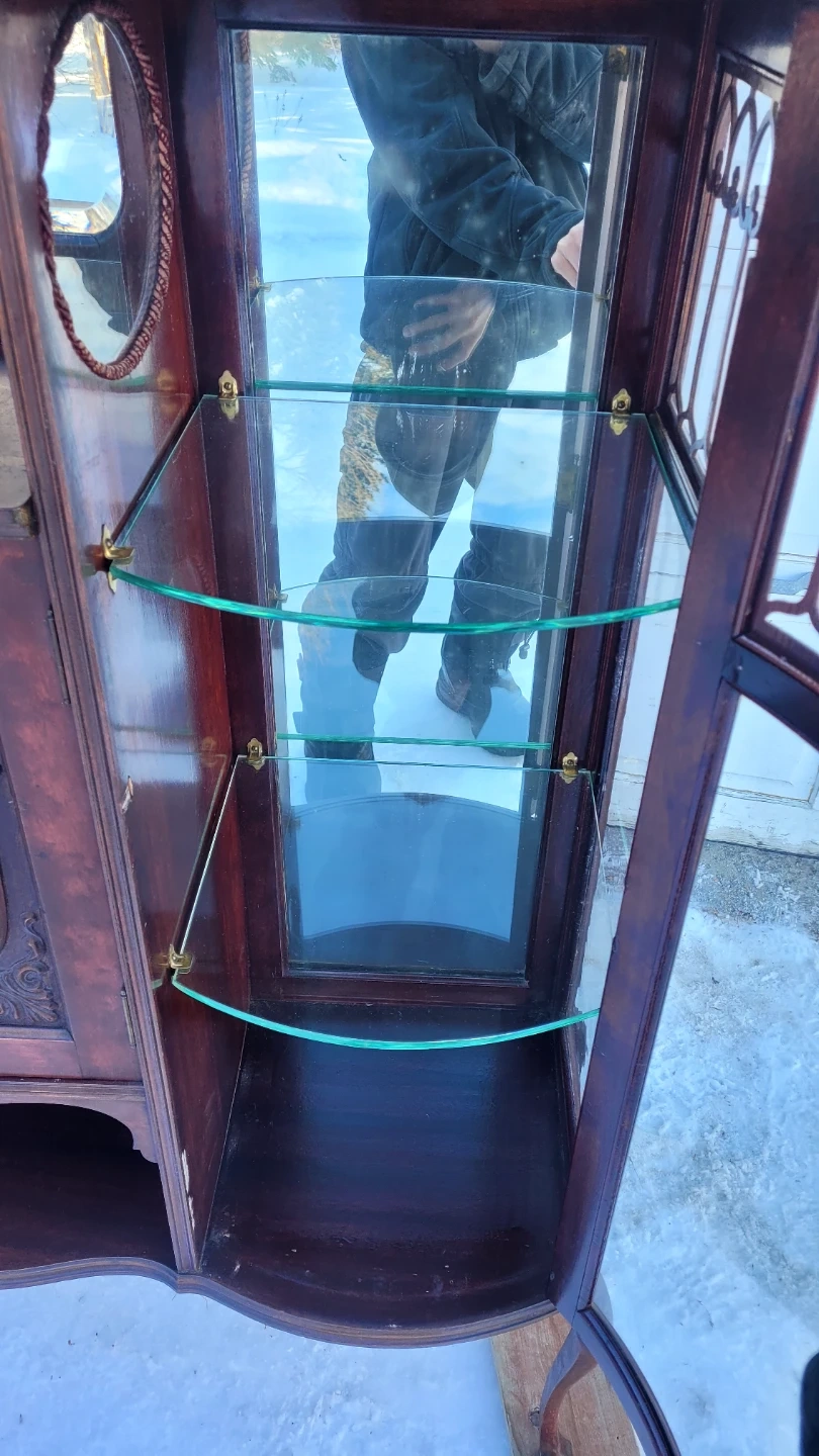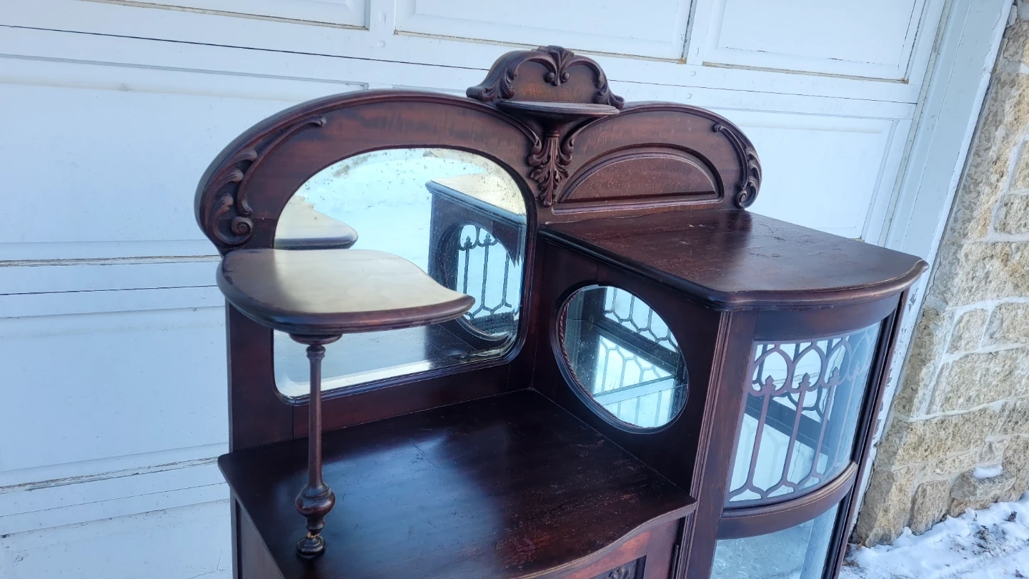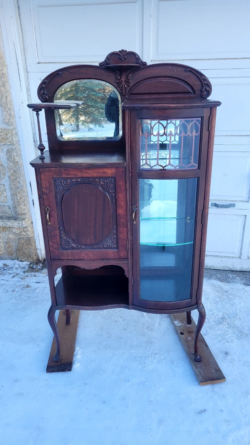 Antique Victorian mahogany display cabinet with record storage. Both doors lock (comes with skeleton key). In pretty good condition but the top could use some work.
