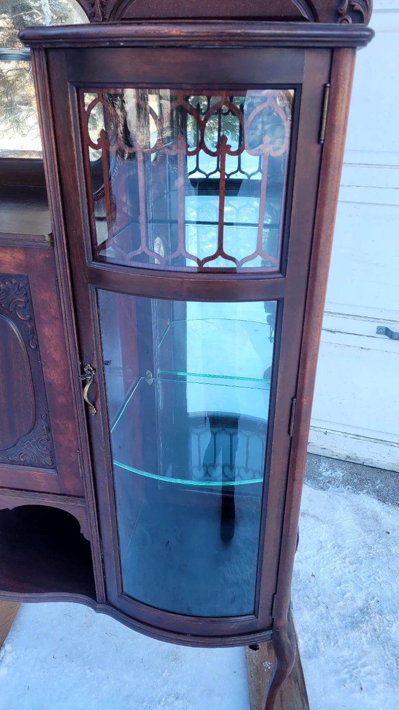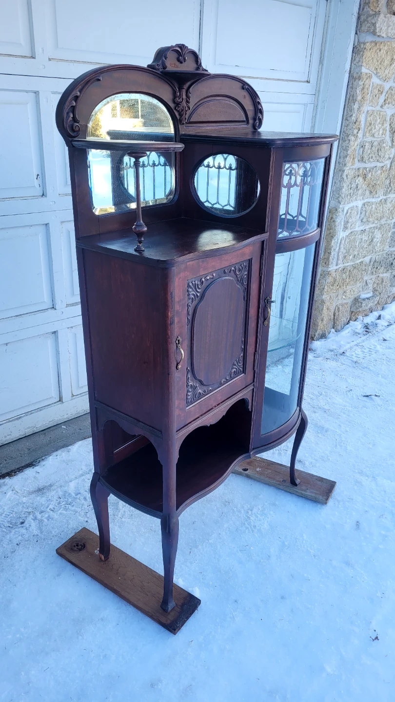 Antique Victorian mahogany display cabinet with record storage. Both doors lock (comes with skeleton key). In pretty good condition but the top could use some work.