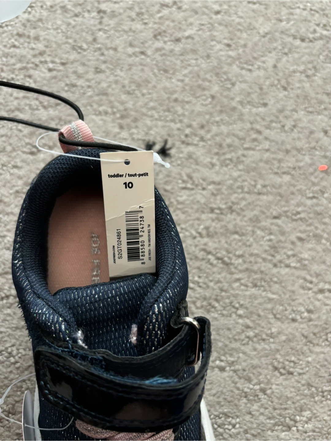 These Joe Fresh toddler shoes are brand new with tags! They're a size 10 and feature a memory foam insole for extra comfort. Perfect for your little one's adventures!