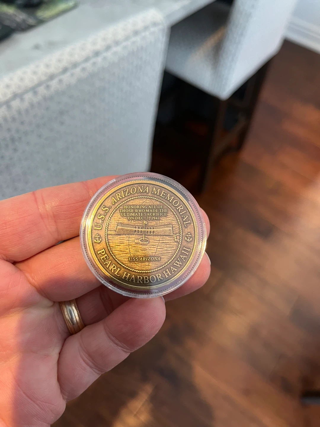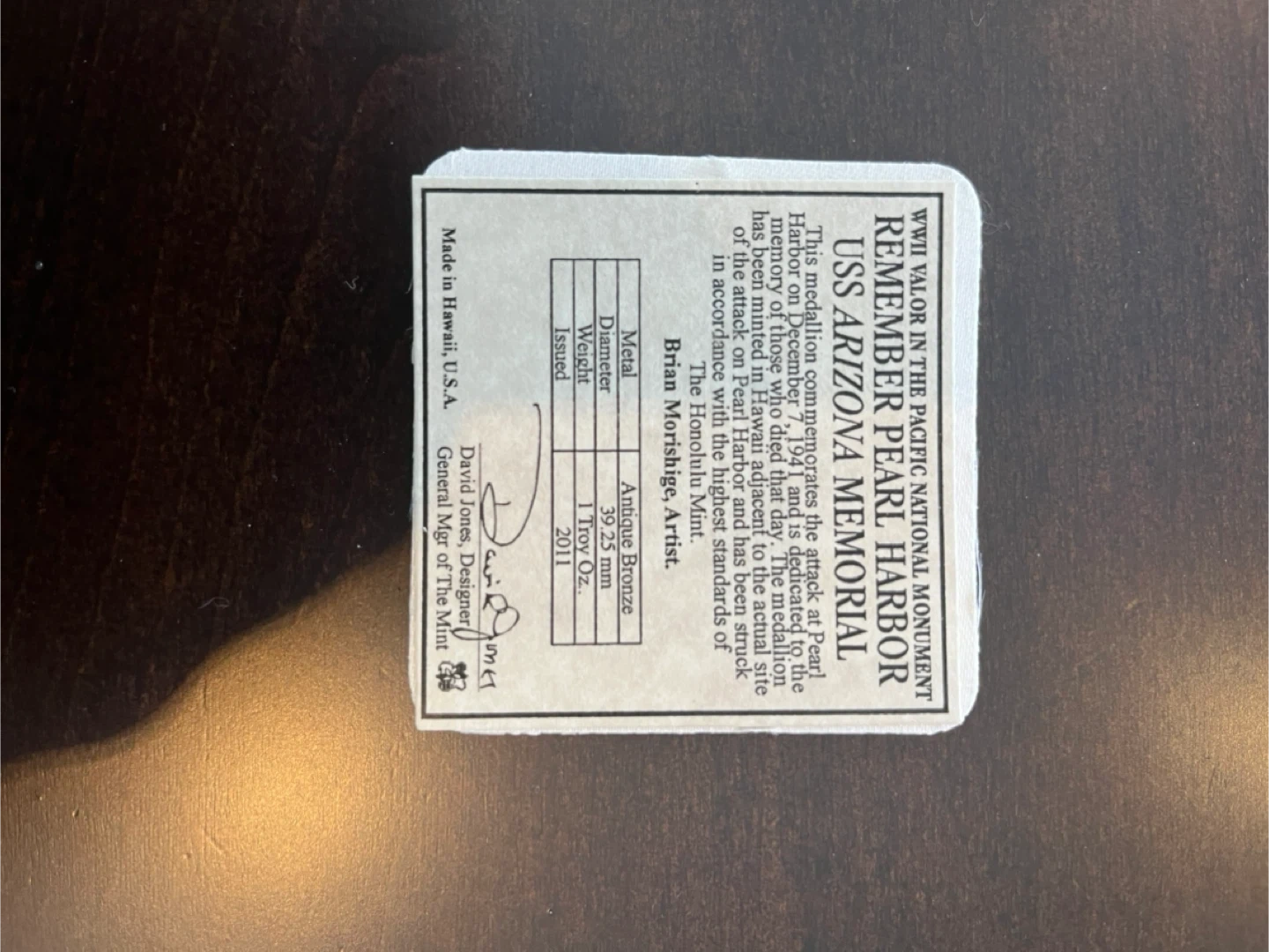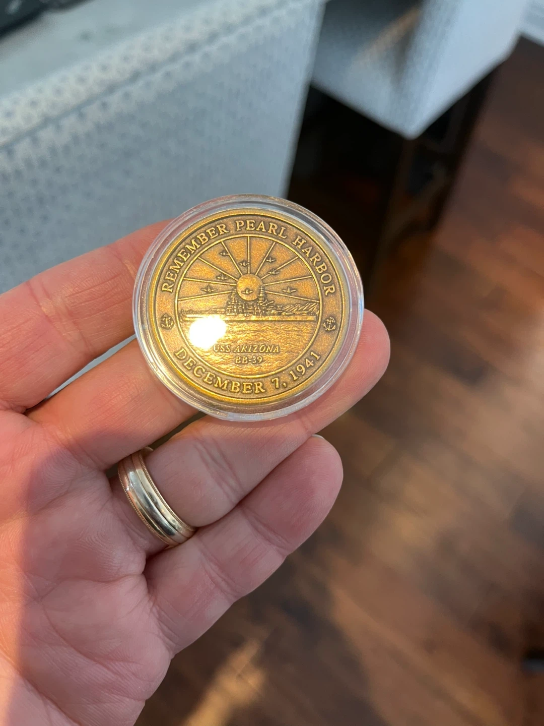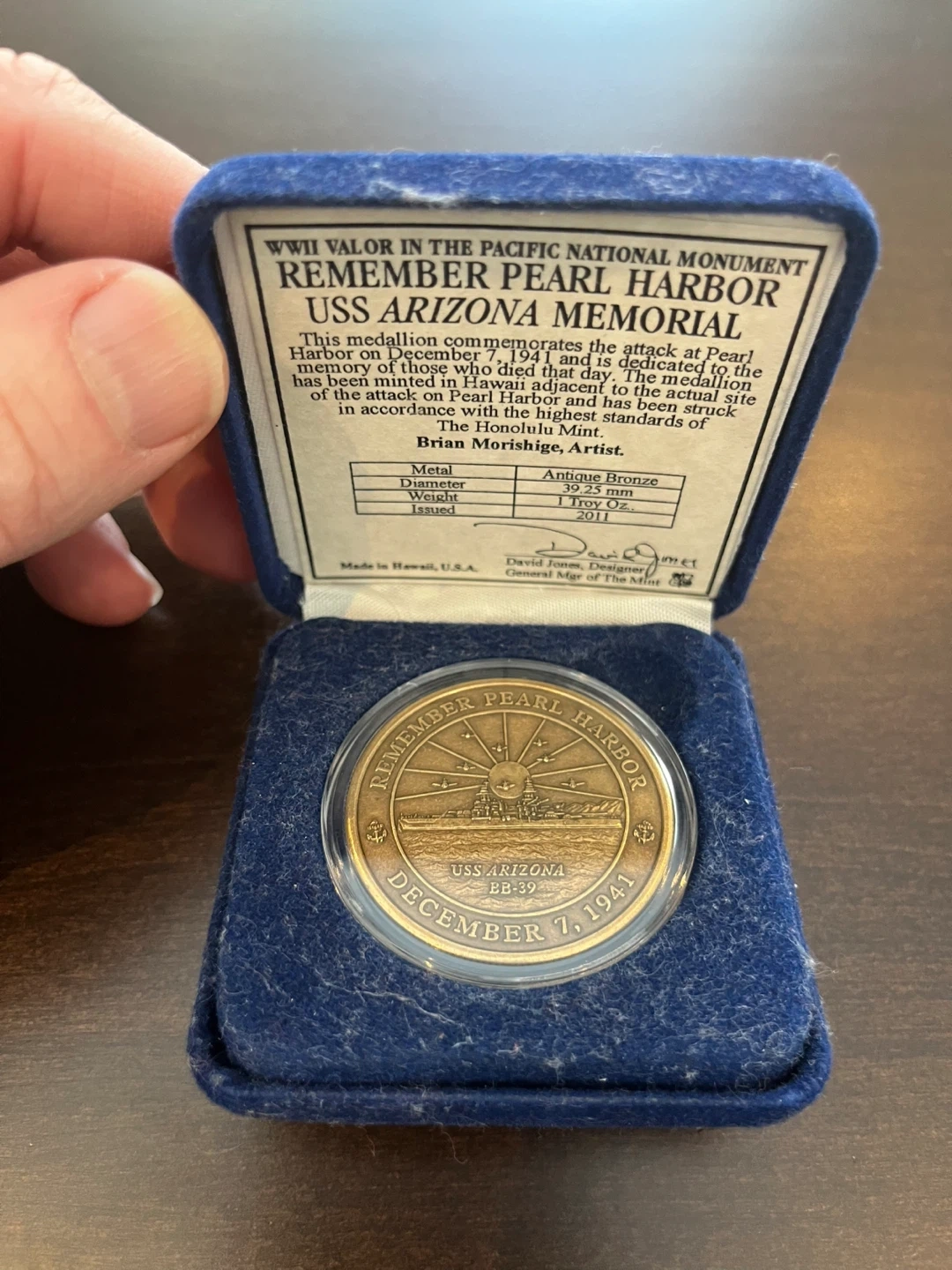 Buy & SellRemember Pearl Harbor USS Arizona Memorial MedallionRemember Pearl Harbor USS Arizona Memorial Medallion$25Remember Pearl Harbor USS Arizona Memorial Medallion Antique Bronze 1 Troy Oz. Issued in 2011WHERE TO MEETFriars CtView MapSELLERJimGlen Abbey717 reviews0 chats·0 favorites·9 viewsSEND CHAT TO SELLERHi Jim! I’m interested in your listing.Hi Jim! I’m interested in your listing.Get the Karrot app to chatSign In to chat