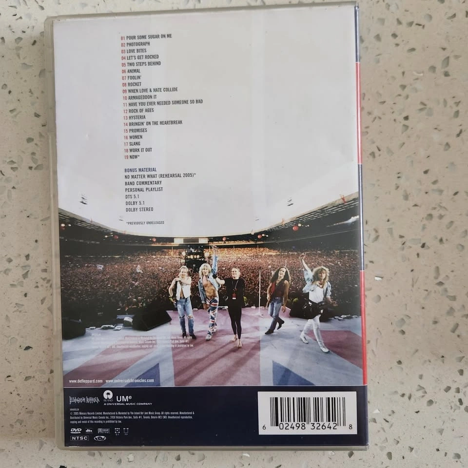 It also includes "Bringin' On the Heartbreak," "Promises," and "Slang." Bonus features include a rehearsal video for "No Matter What," track-by-track commentary from the band, and a personal playlist option. Total runtime is approximately 146 minutes. This is a standard DVD-Video, Region 1 (NTSC) for North America.