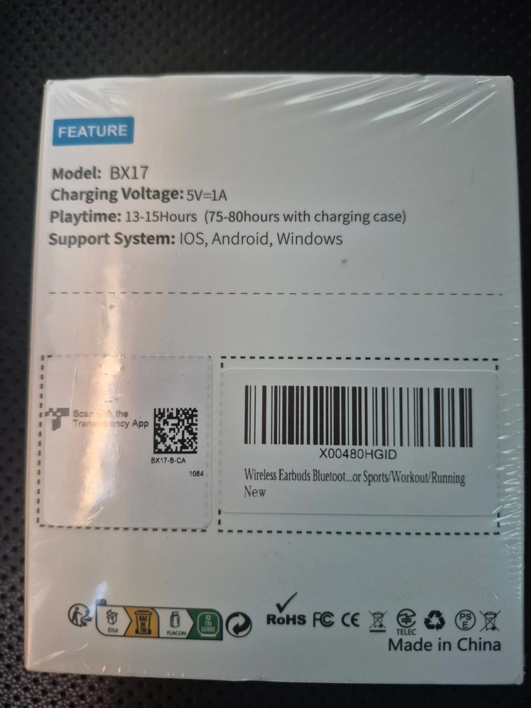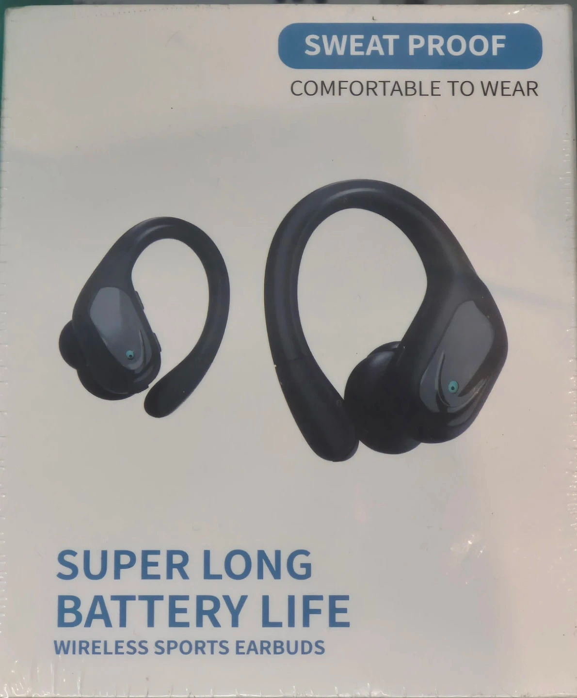 Comfortable to wear wireless sports earbuds. Playtime is 13-15 hours, or 75-80 hours with the charging case. Supports iOS, Android, and Windows. $25 EACH