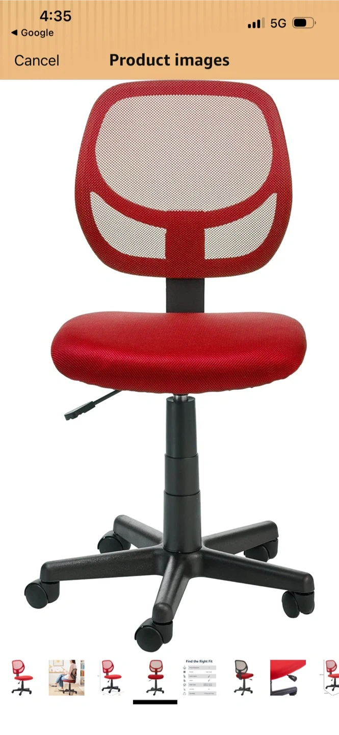 New AmazonBasics Low Back Computer Chair (Red), Nylon, Mesh