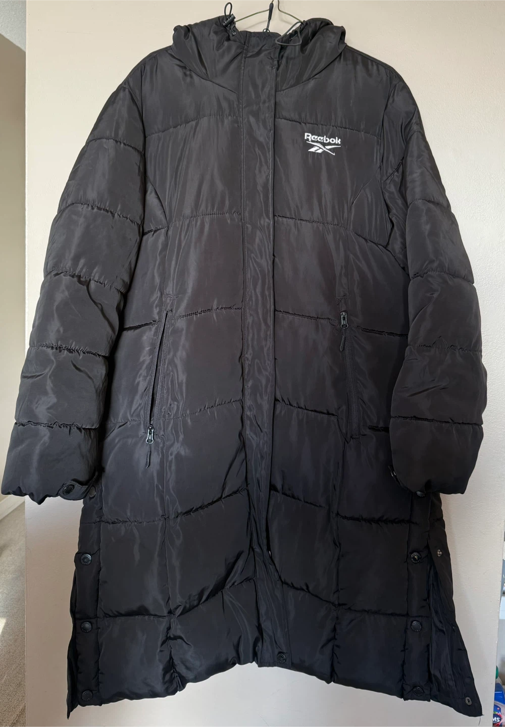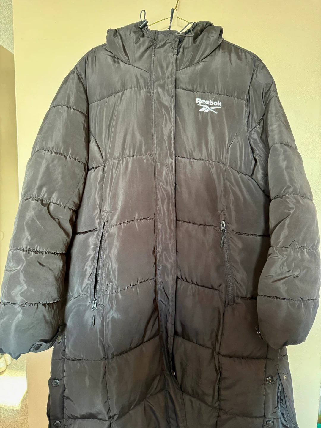 Selling a Reebok puffer coat in black. It's in great condition and ready for the colder weather! Perfect for staying warm and stylish during those chilly days.