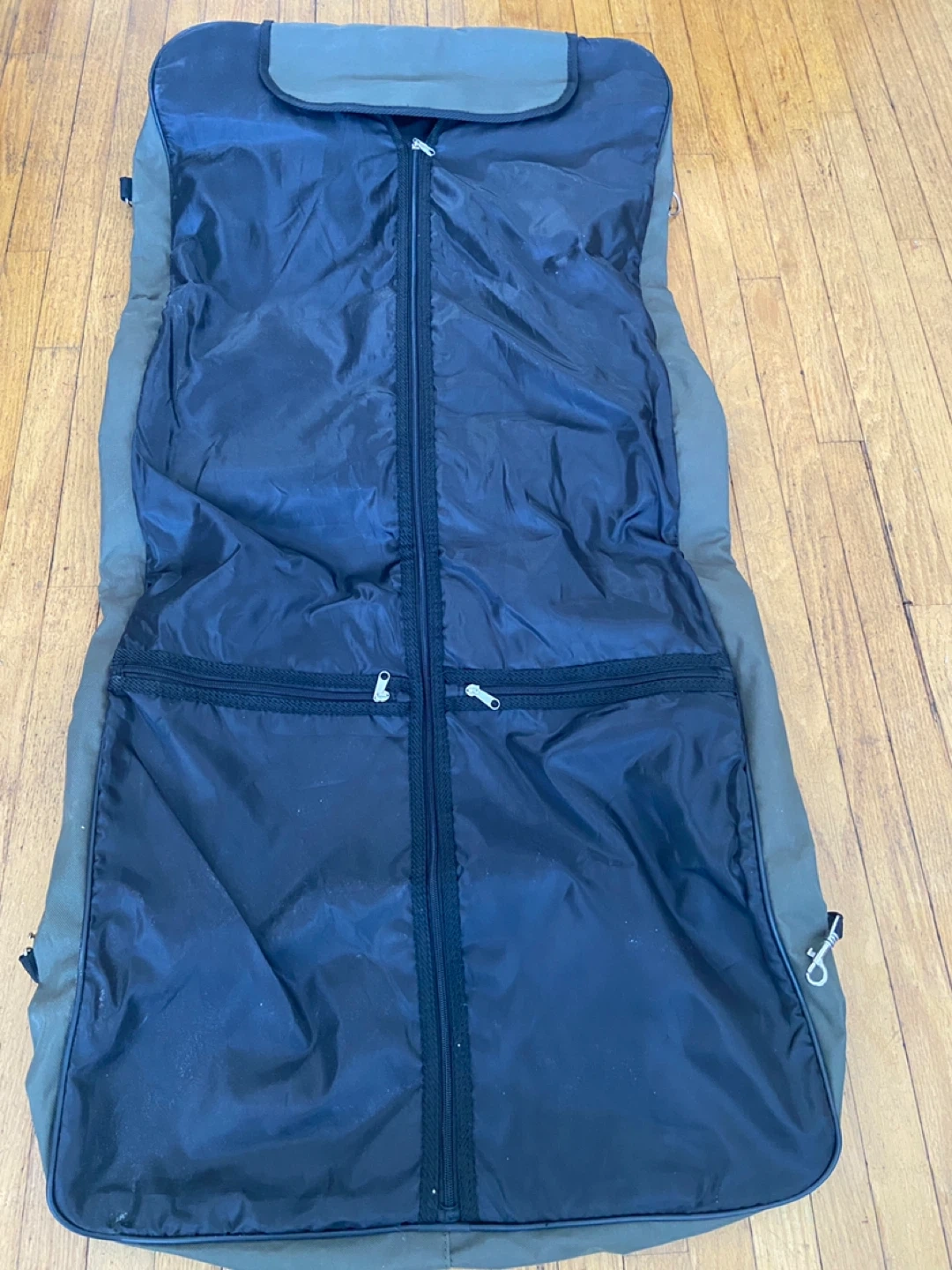 This is a Lynx garment bag. It's a foldable bag with multiple zippered compartments. It has a durable exterior and carrying handles for easy transport.