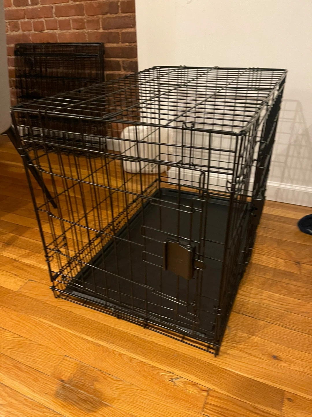 Used for 8 months with puppy and has outgrown it, everything works well and is in good condition. Comes with crate cover and the divider it was sold with.