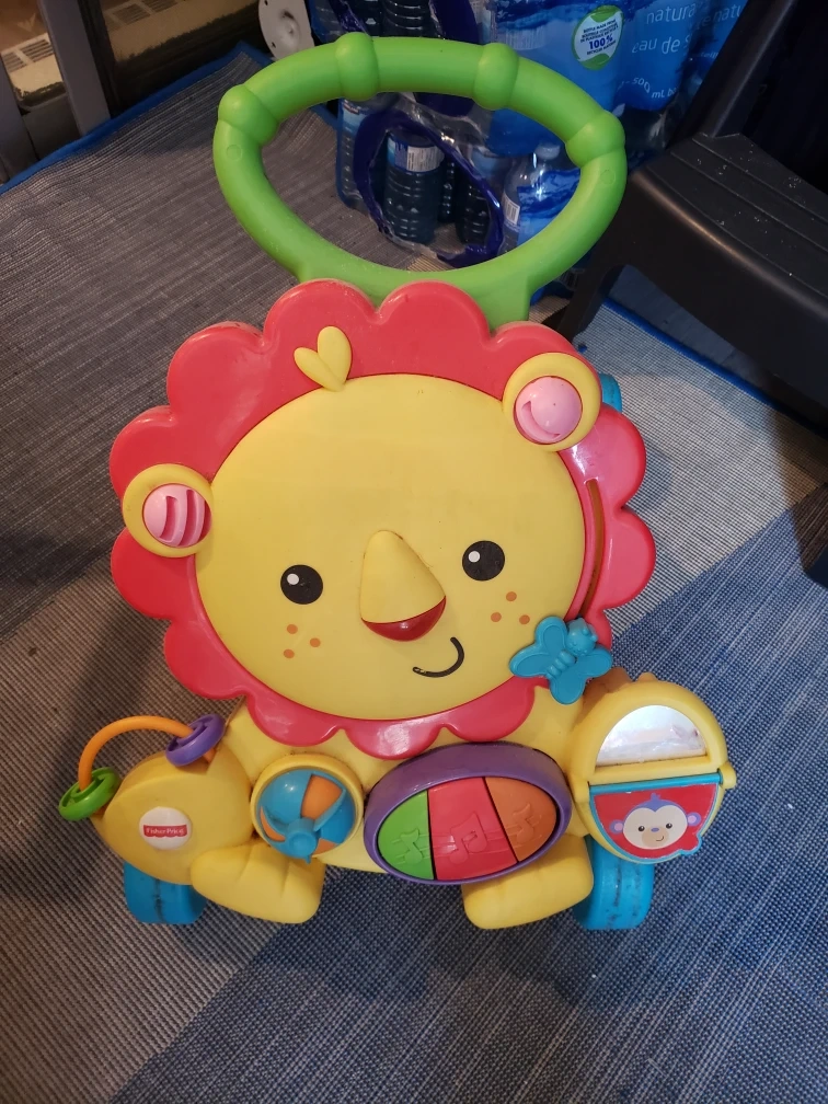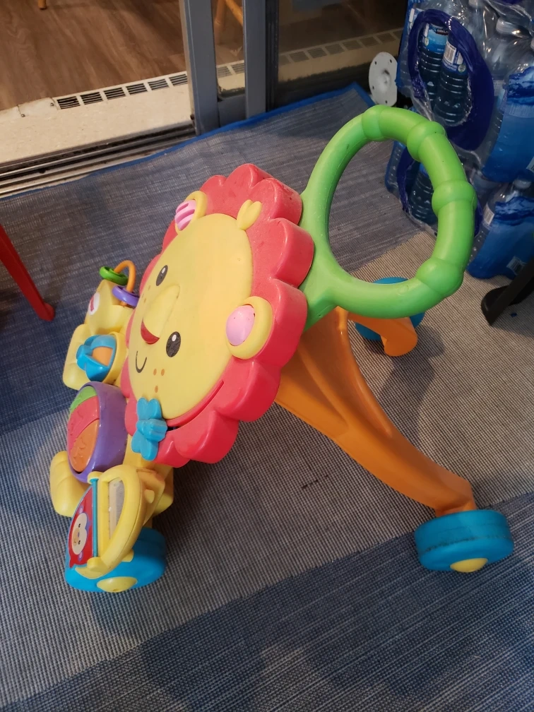 This Fisher-Price Lion Walker is perfect for helping your little one take their first steps! It's got a sturdy base and a comfy handle for them to hold onto. Plus, it's got lots of fun activities to keep them entertained, like buttons, spinners, and rattles. Recommended for ages 6-36 months, it's a great way to encourage gross motor skills and hand-eye coordination. Pickup at Jane and Finch