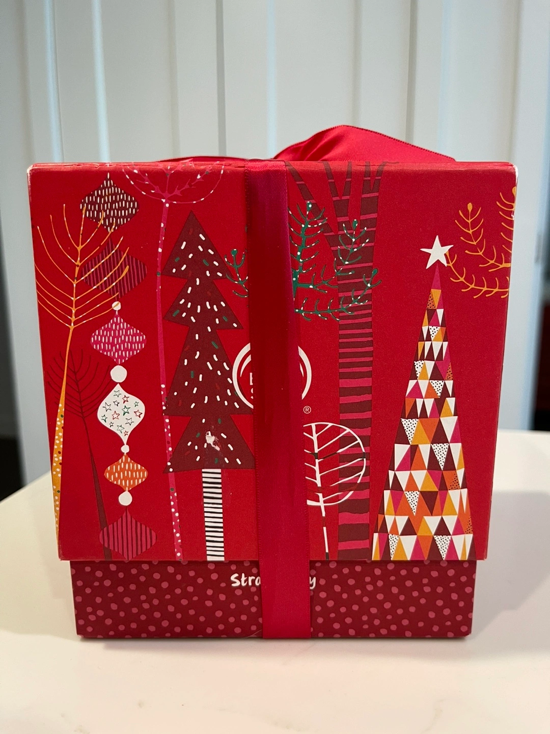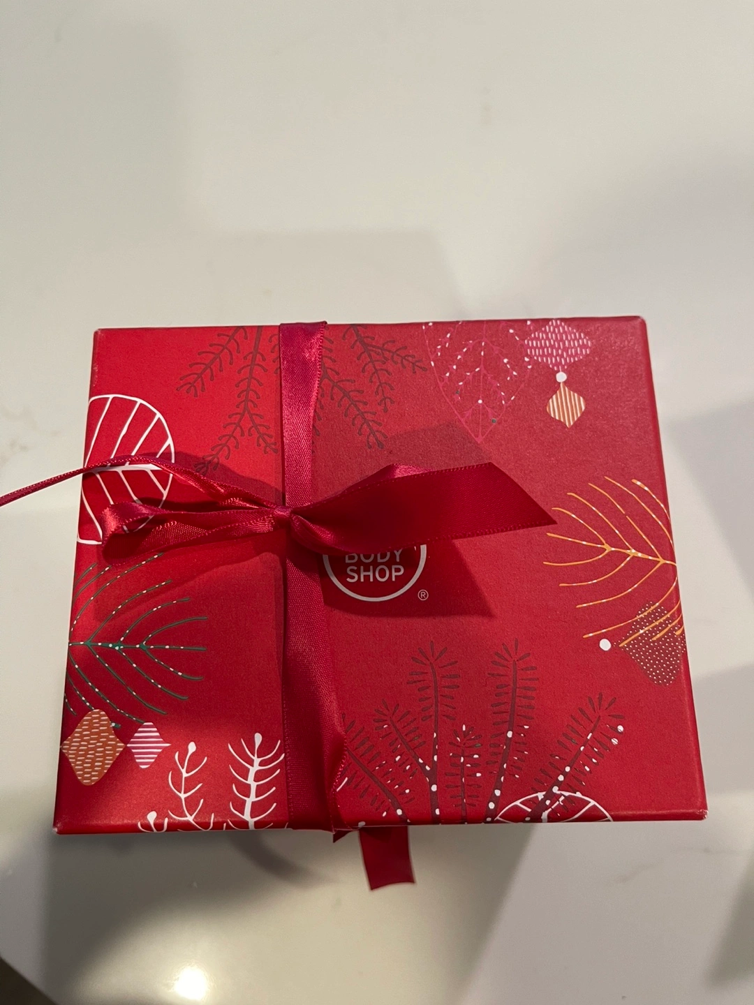 New, unopened The Body Shop Strawberry Festive Gift Set. Includes body butter, shower gel, body wash, soap, and bath puff. Festive red box with ribbon.