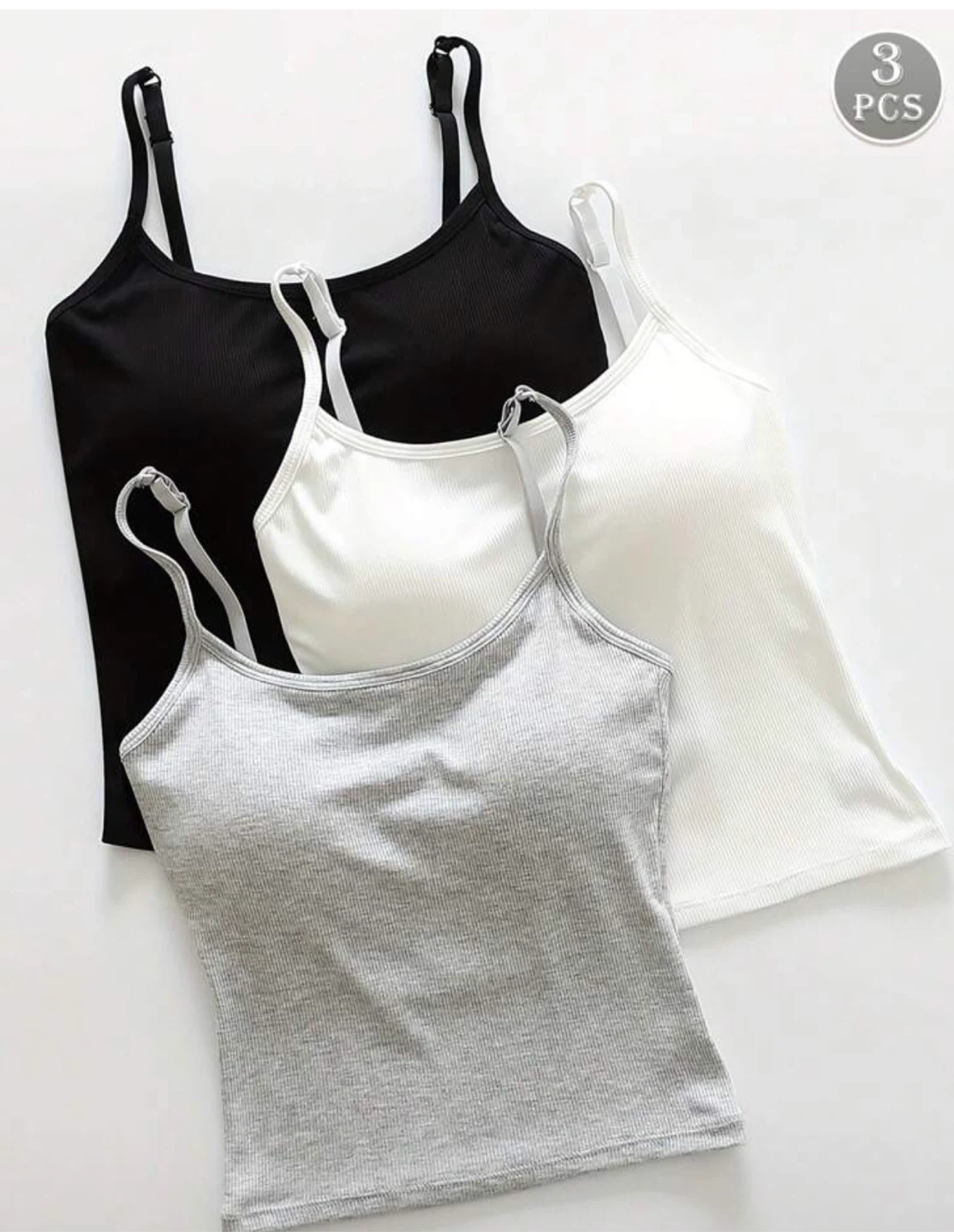 3-Piece Set: Black, White, Gray Cami Tank Tops