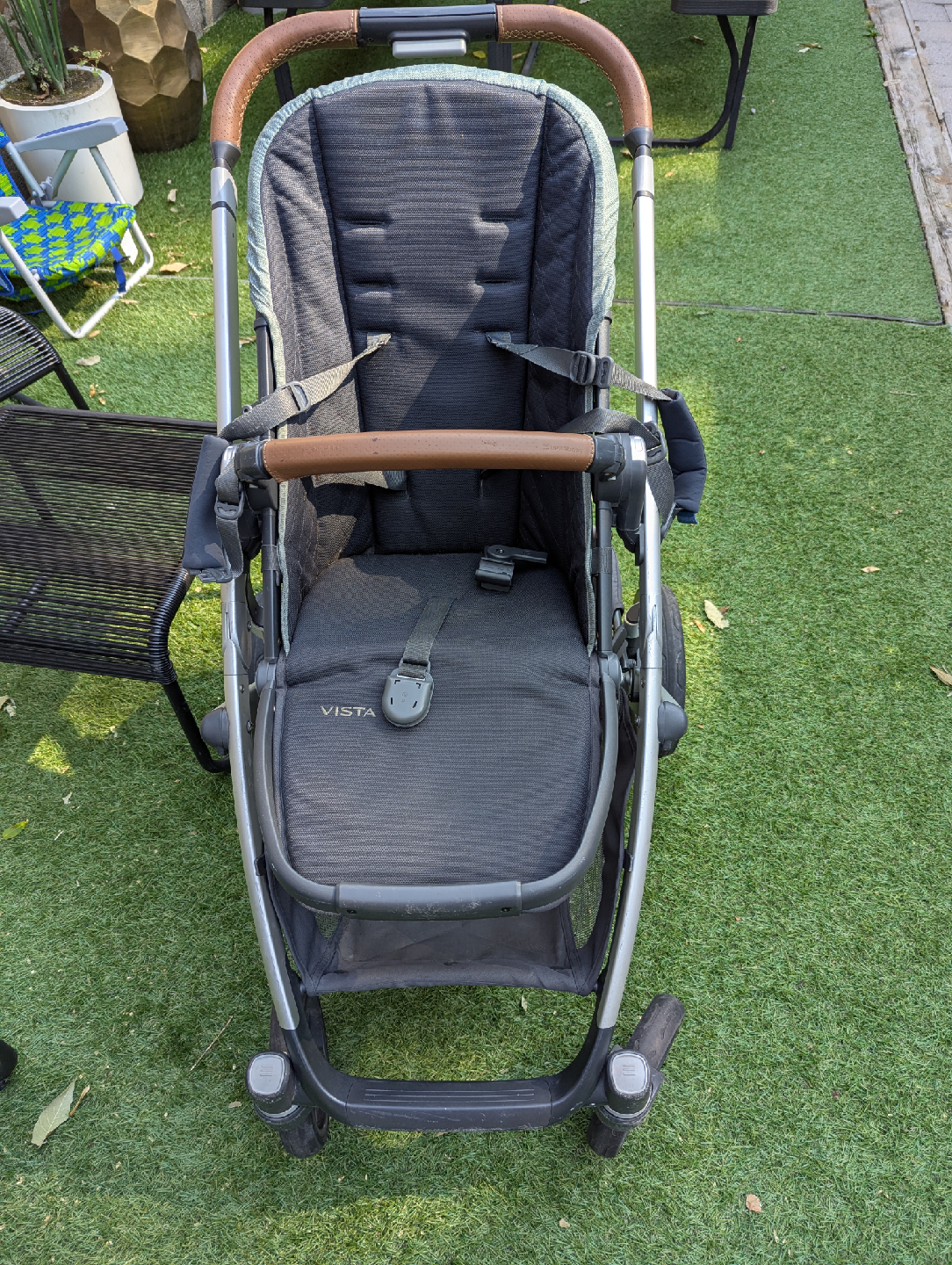 Selling an UPPAbaby Vista V2 stroller with the bassinet attachment! this is the version with the beautiful green fabric and tan leather handles. The stroller is in great condition and ready for a new family. Frame and seat weight is 27.6 lbs. Dimensions when unfolded are 36.5" x 39.5" x 25.7" and when folded are 16.3" x 33.8".
