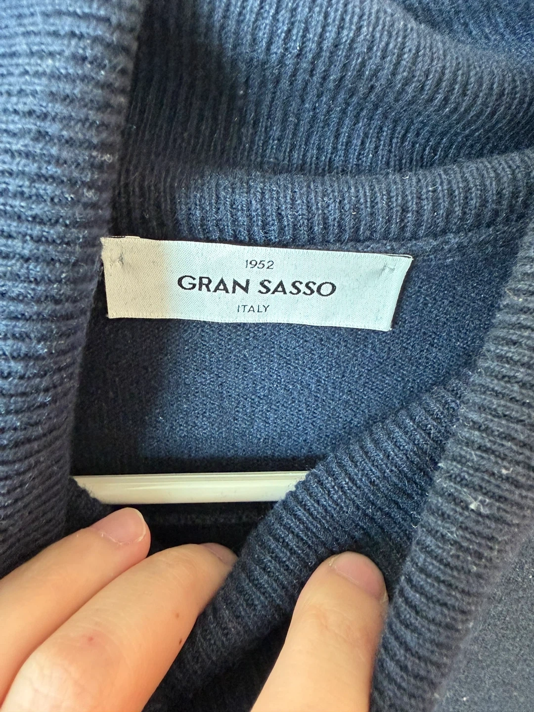 Buy & SellGran Sasso Turtleneck SweaterGran Sasso Turtleneck Sweater$4Selling a Gran Sasso turtleneck sweater. Very very comfortable! It is a navy blue color and has a small hole on the front. Size 48, US SIZE MConditionOkaySizeM 48BrandGran SassoWHERE TO MEETRoosevelt Police StationView MapSELLERverifiedJackRoosevelt Island600 reviews0 chats·0 favorites·13 viewsSEND CHAT TO SELLERHi Jack! I’m interested in your listing.Hi Jack! I’m interested in your listing.Get the Karrot app to chatSign In to chat