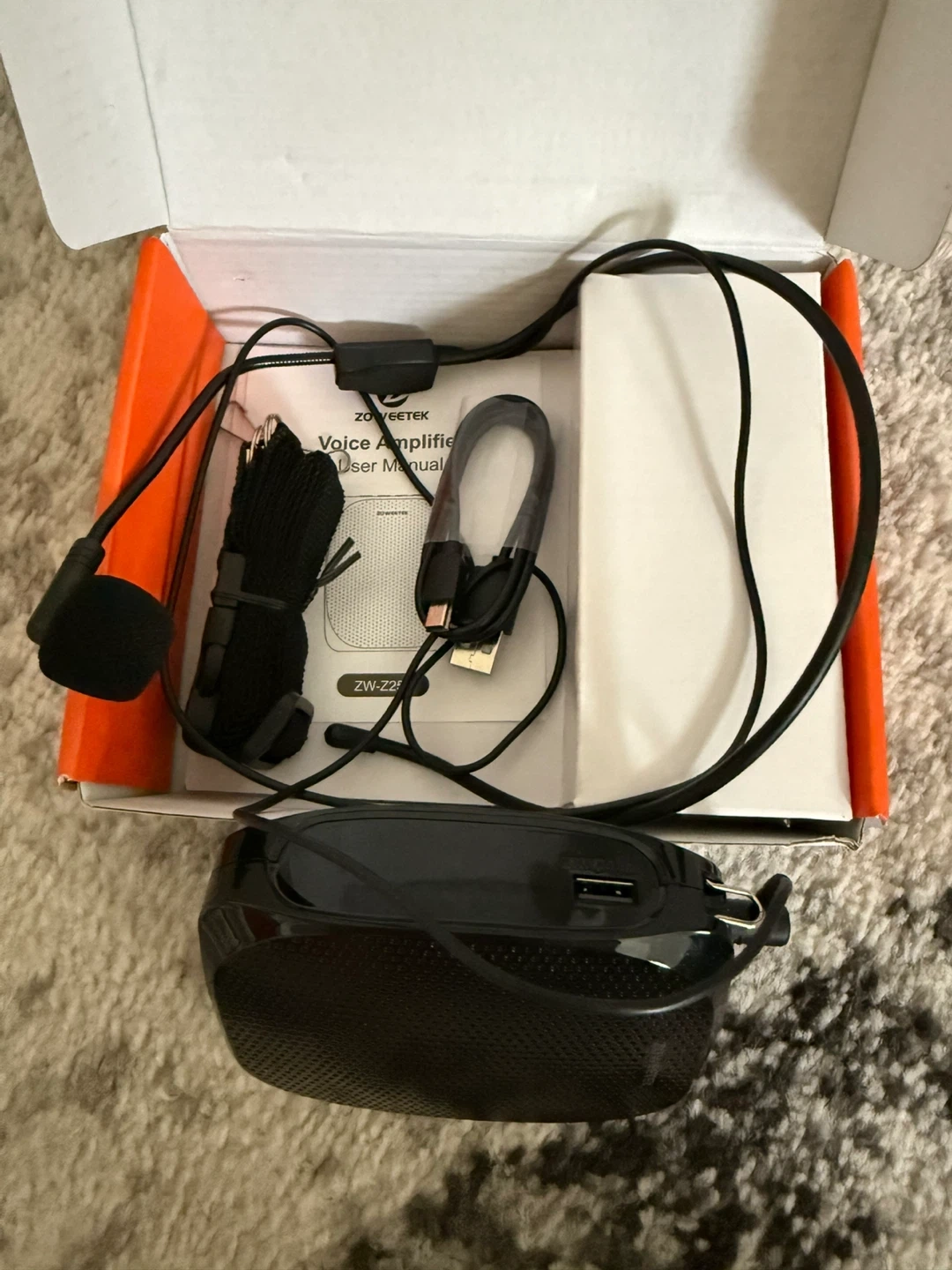 ZOWEETEK ZW-Z258 Portable Rechargeable Mini Voice Amplifier for Teachers with Wired Microphone Headset and Waistband