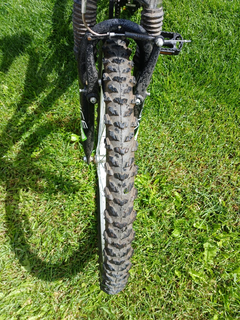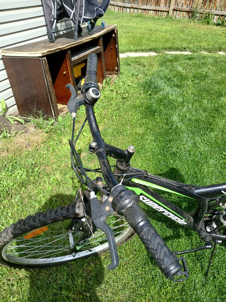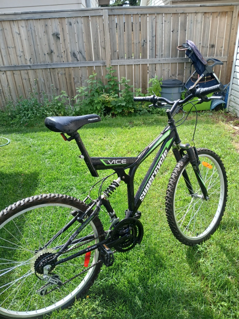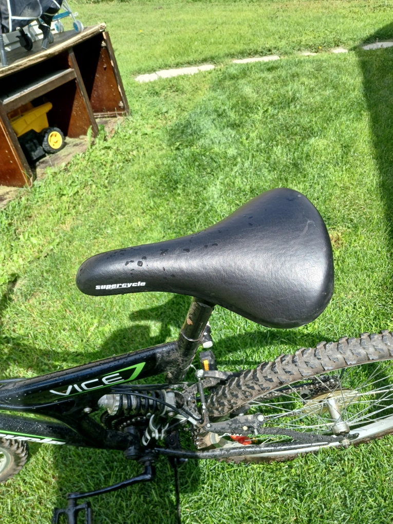 Selling a Supercycle Vice mountain bike. It's black and green. It has some signs of use.