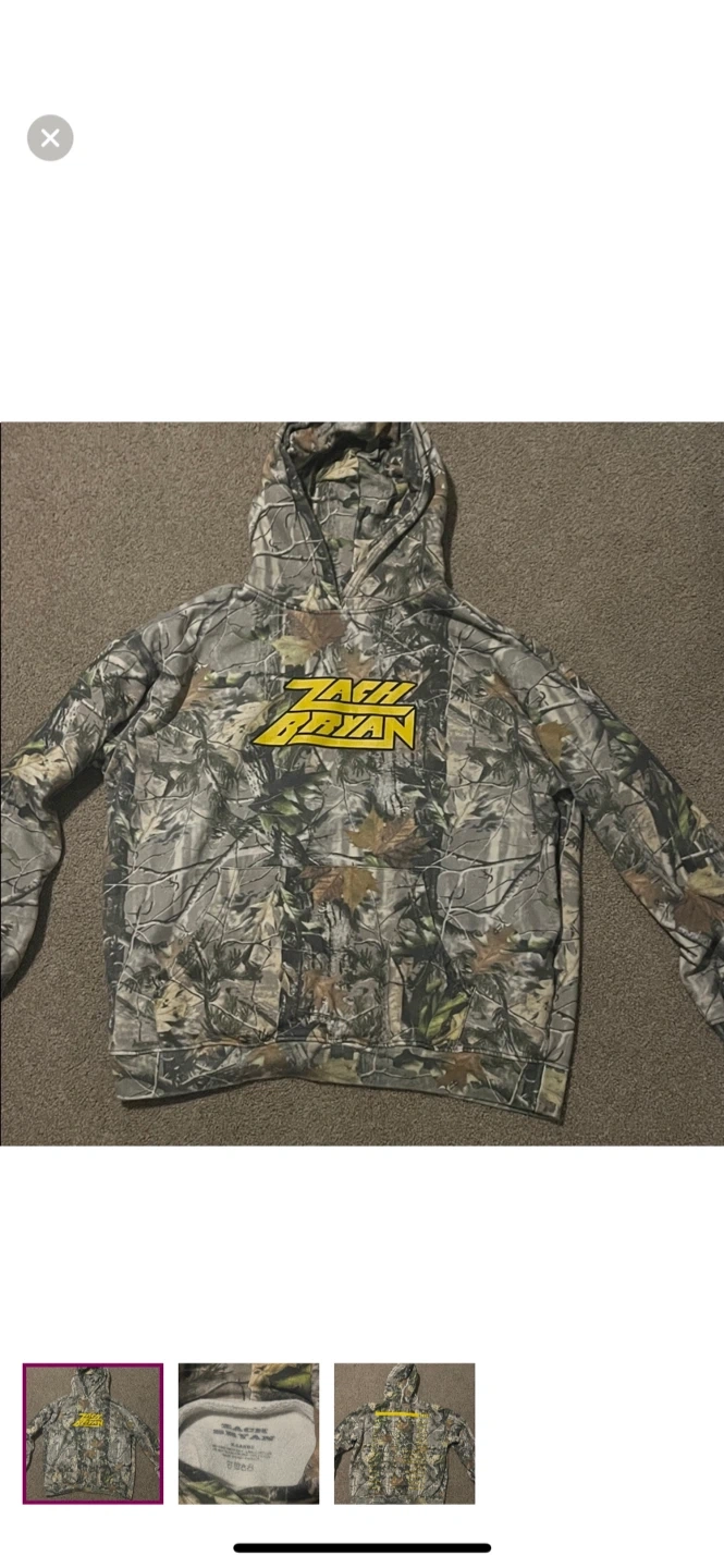 Camo Zach Bryan hoodie in size XL. The hoodie features tour dates on the back and the Lazy Gram logo on the front. Perfect for any Zach Bryan fan!