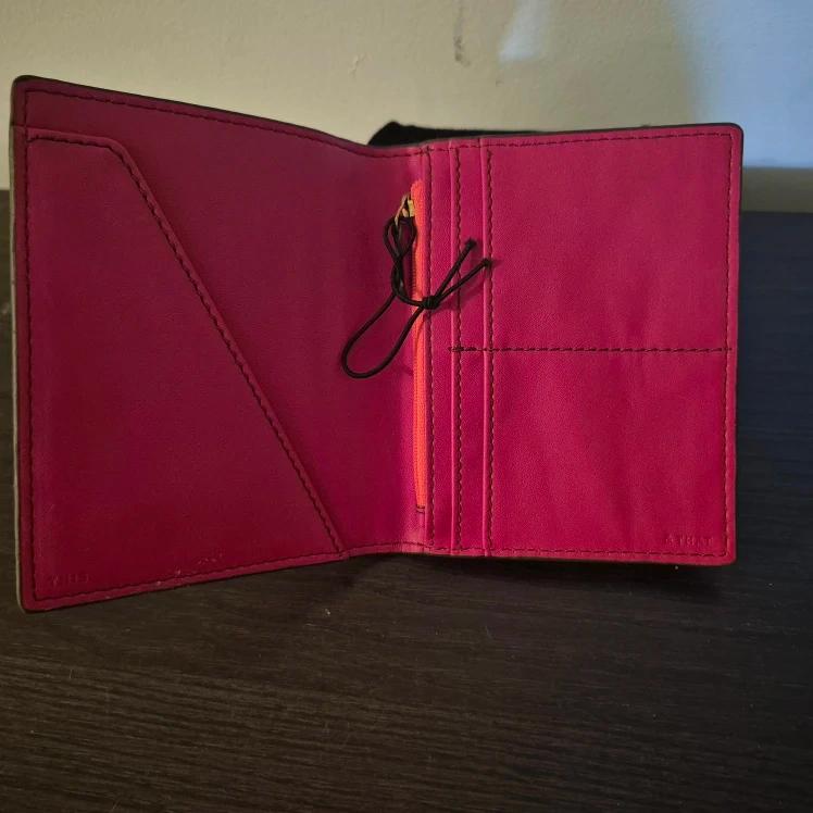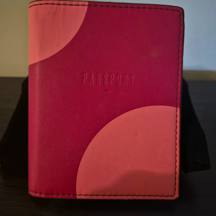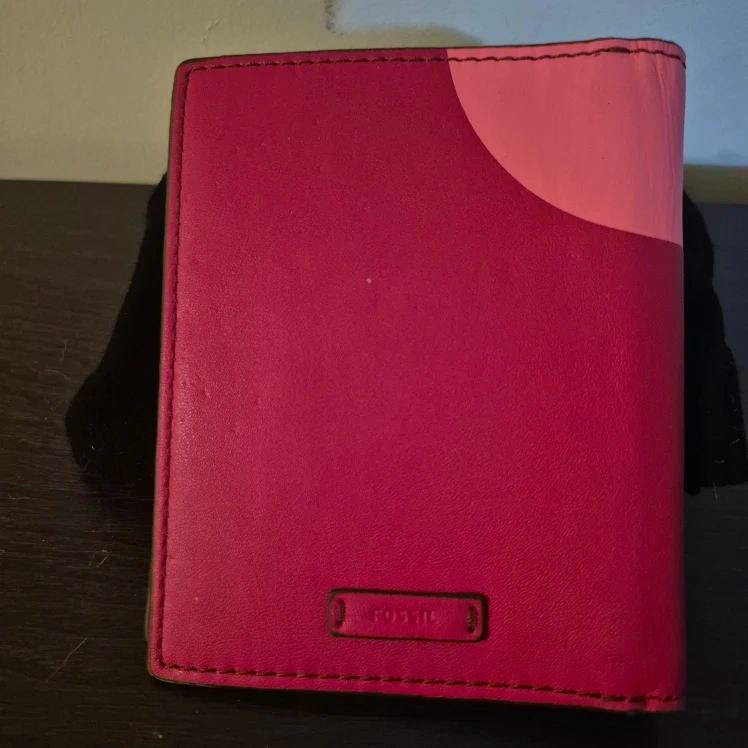 Here's a cute Fossil passport holder! It's a vibrant pink leather with a unique colour block design. Perfect for keeping your travel documents organized in style
