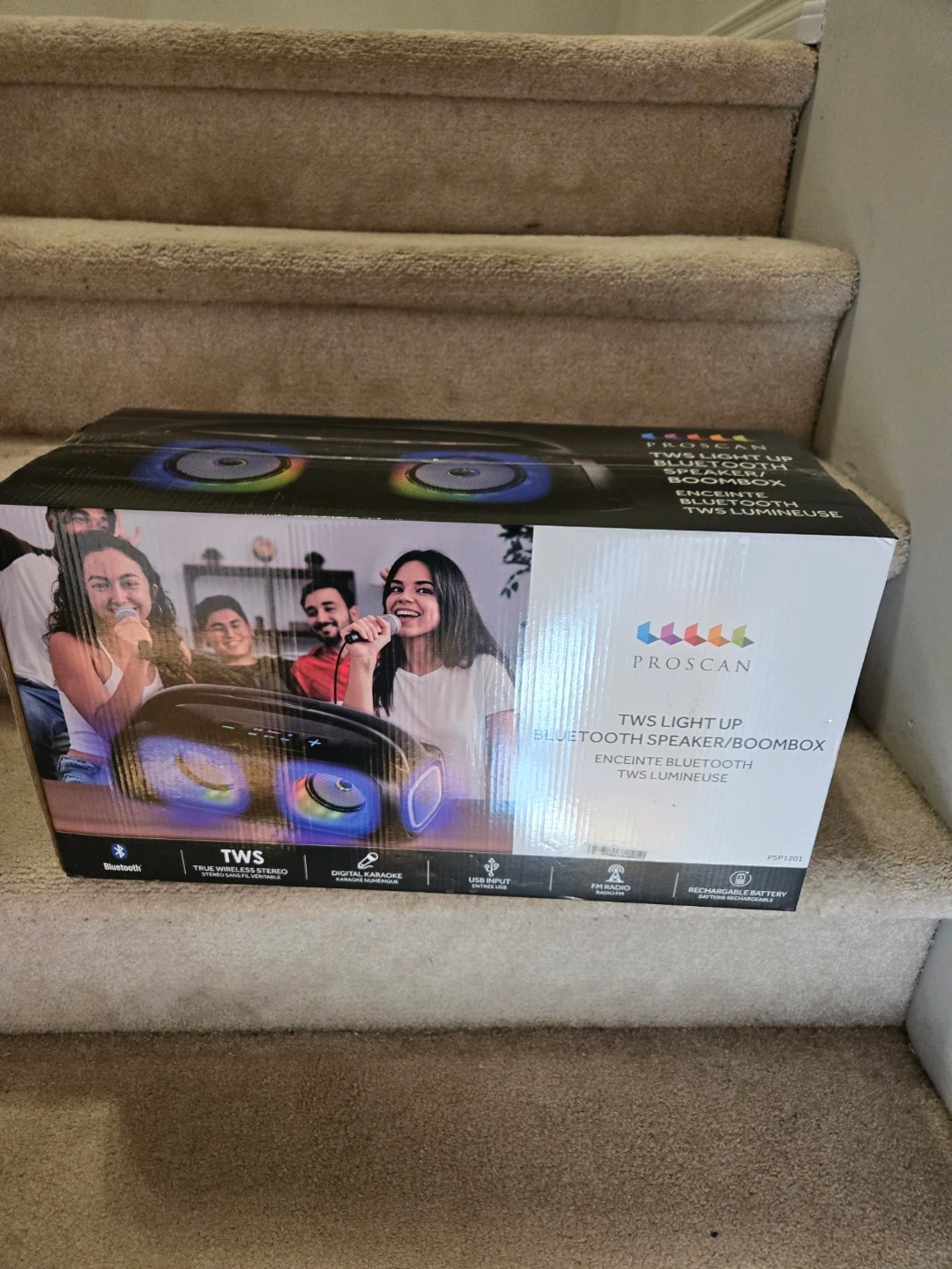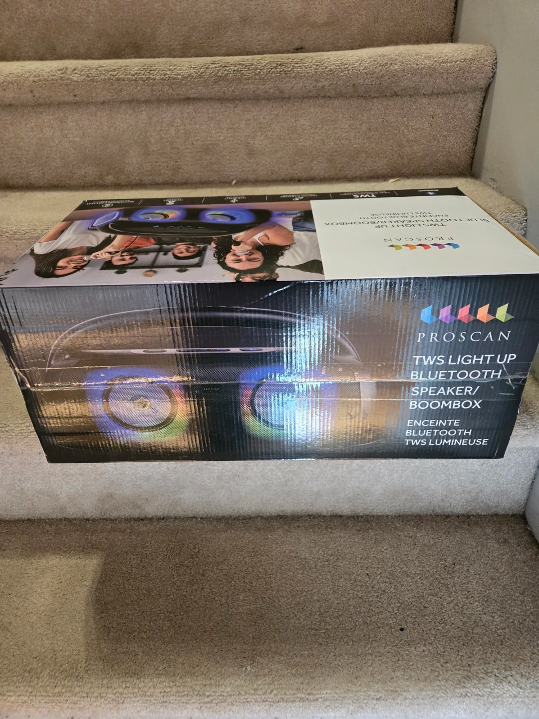 This Proscan speaker features TWS light-up capabilities and Bluetooth connectivity. It's a boombox designed for wireless audio streaming. Great for parties and singalongs!