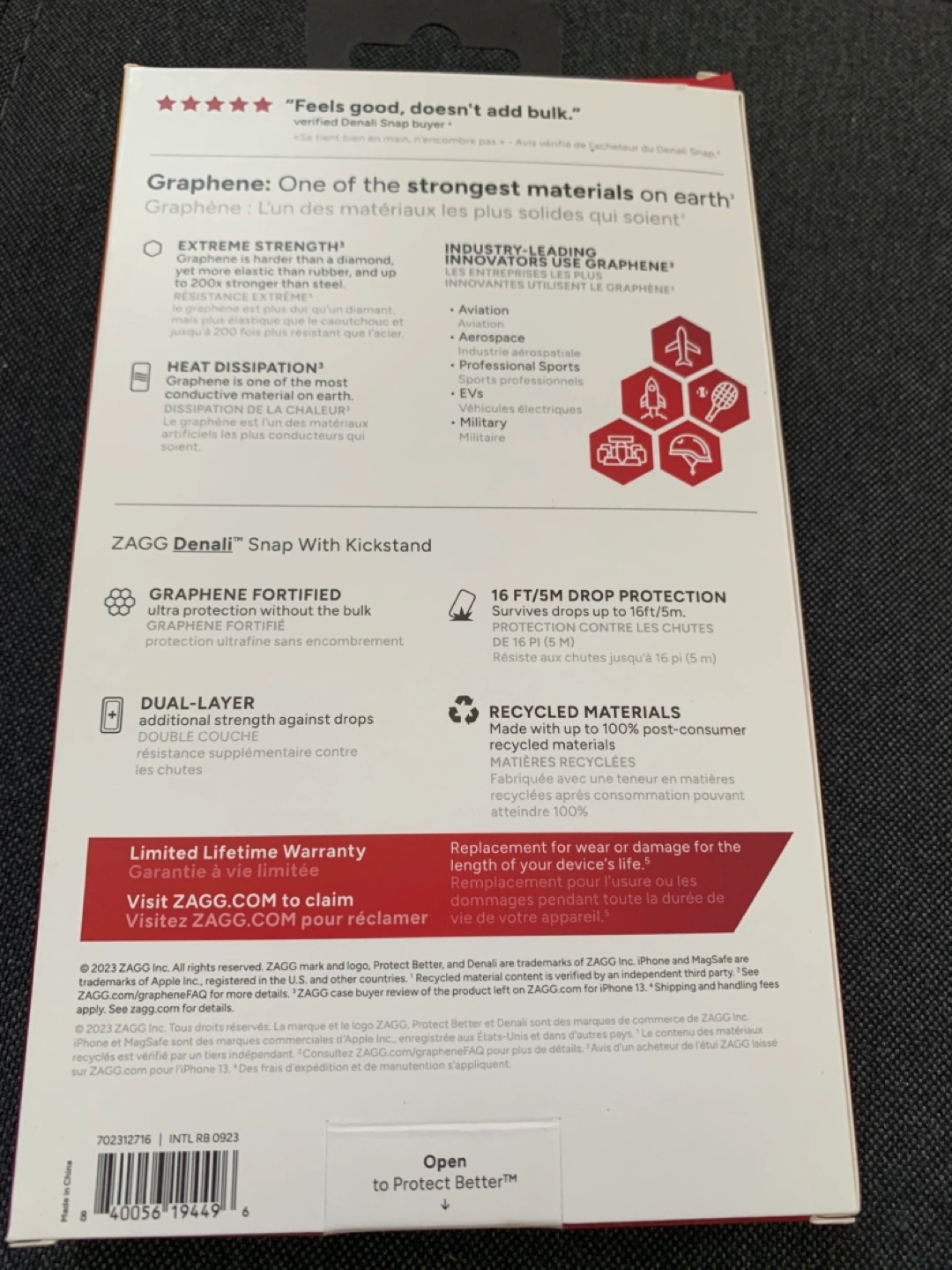 48Ultra-protective phone case. Compatible with MagSafe. Integrated kickstand. Graphene fortified. 16-foot drop protection. Limited lifetime warranty.