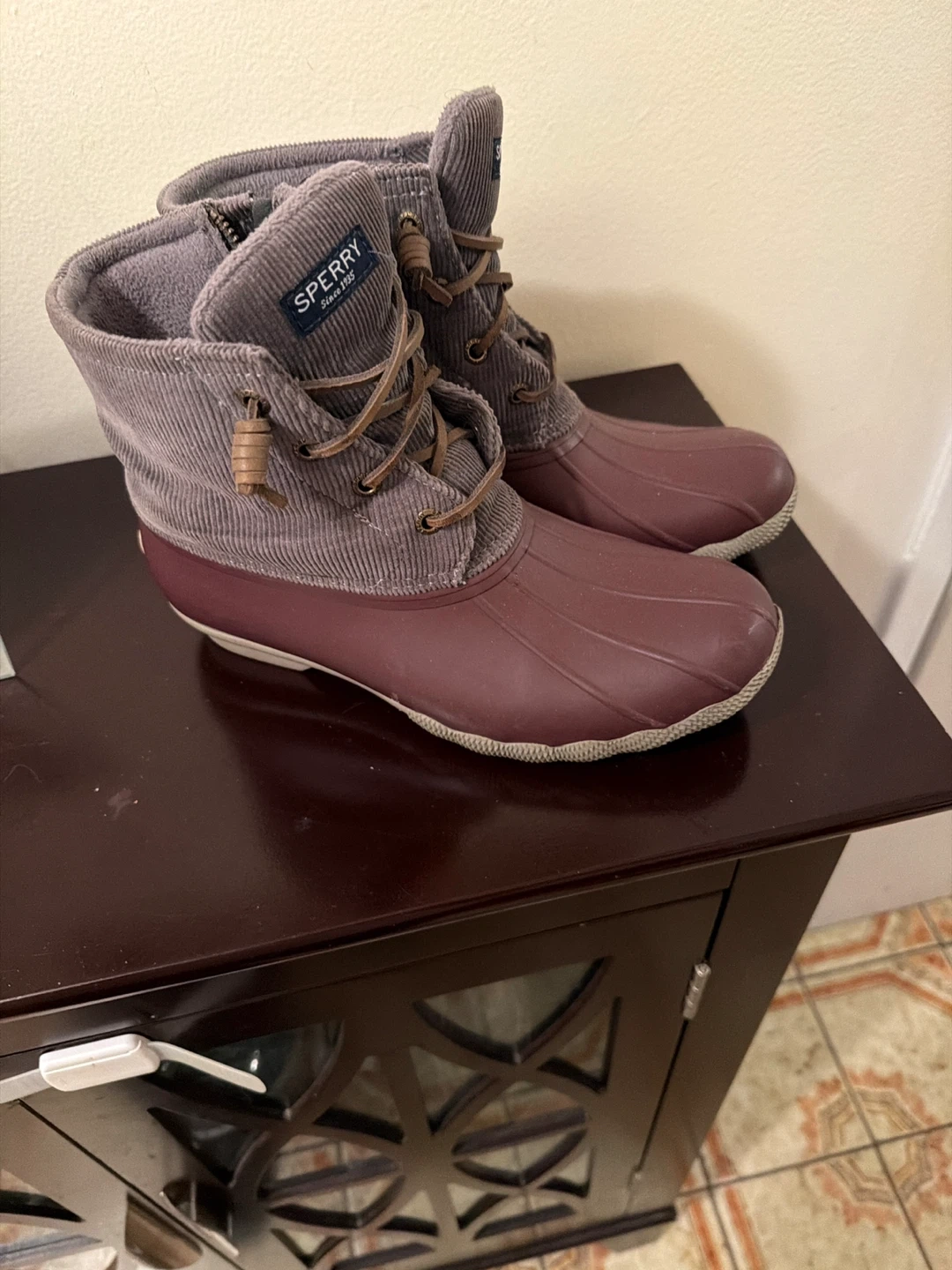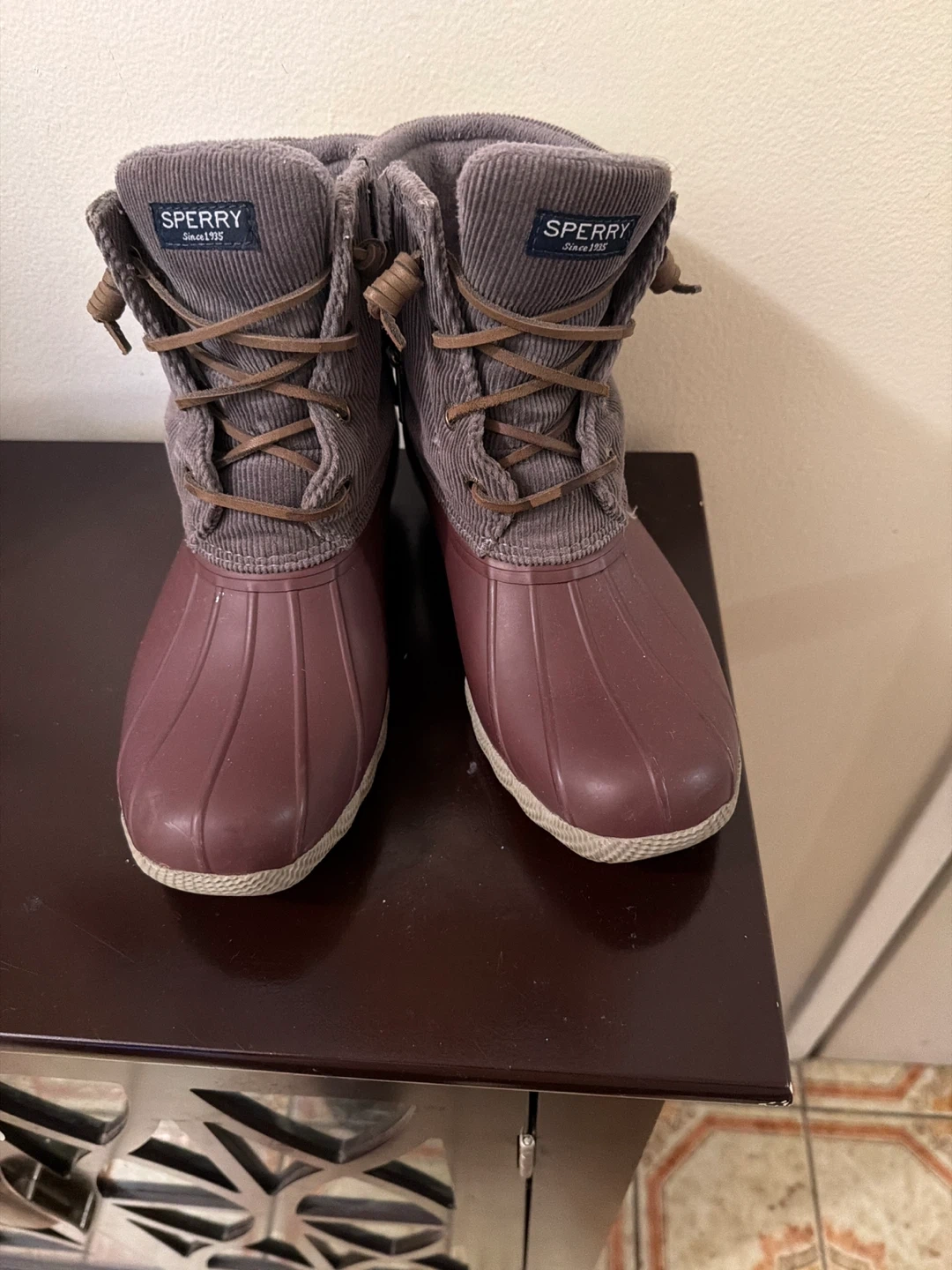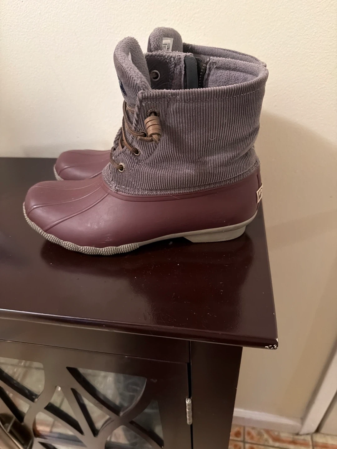 Sperry Women's Duck Boots Burgundy & Grey Corduroy