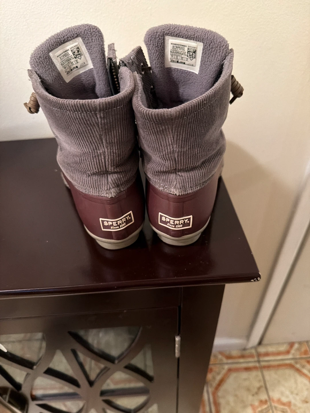 Sperry Women's Duck Boots Burgundy & Grey Corduroy