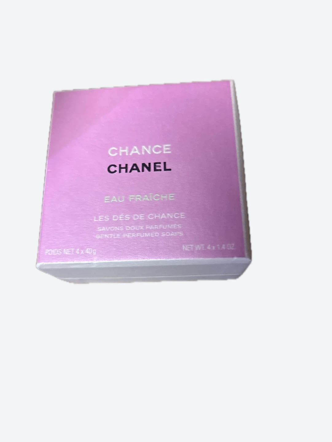 Selling a brand new set of Chanel Chance Eau Fraiche gentle perfumed soaps. This set contains 4 soaps, each weighing 40g (1.4oz). Perfect for a little luxury!