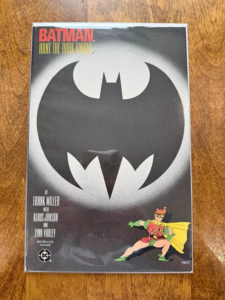 Batman: Hunt the Dark Knight – Book Three, written by Frank Miller. Part of the Dark Knight universe, this issue carries strong Frank Miller collector appeal and iconic minimalist Batman imagery. A great standalone pickup for Batman and Miller fans. Condition is VF/NM to NM. Clean copy, flat, bagged and boarded, and well stored. The comic shown in the photo is the exact one you’ll receive.