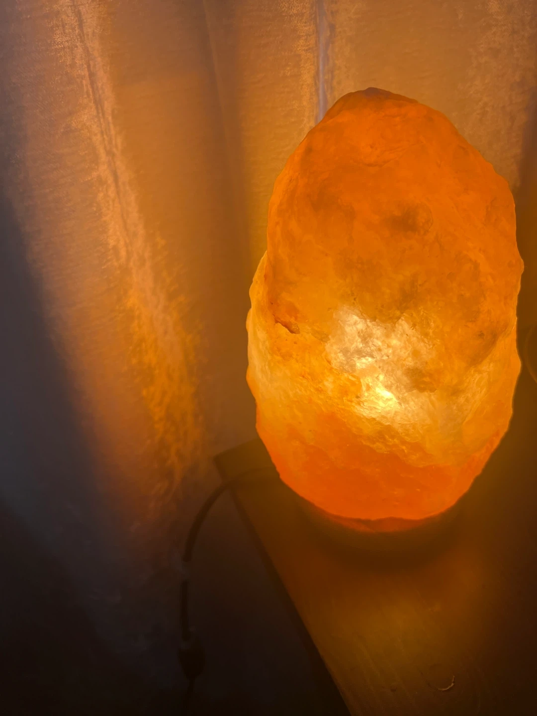 Selling a Himalayan salt lamp! It gives off a warm, calming glow and looks great on a bedside table or shelf. It's in excellent condition and ready to brighten up your space
