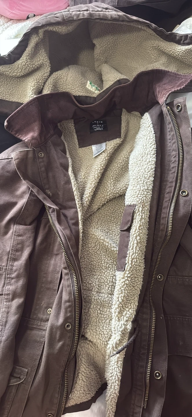 Sorta vintage jacket, lined with wool and a nice brown fabric for its outside. Perfect for the cold weather.