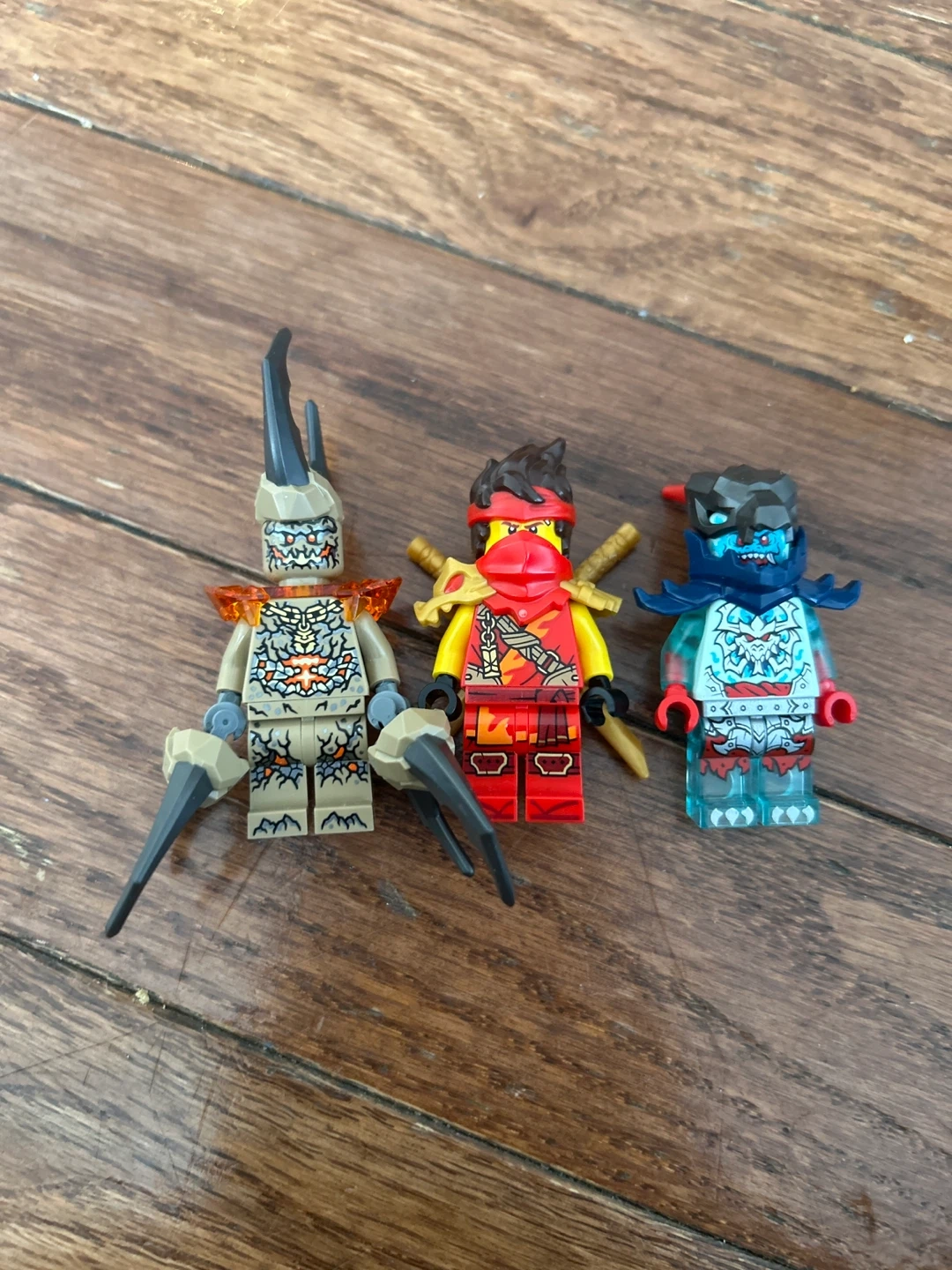 This lot includes three LEGO Ninjago minifigures. The figures are made of plastic and are designed for play or display. They'd be great for any Ninjago fan! Each mini figure is 3$