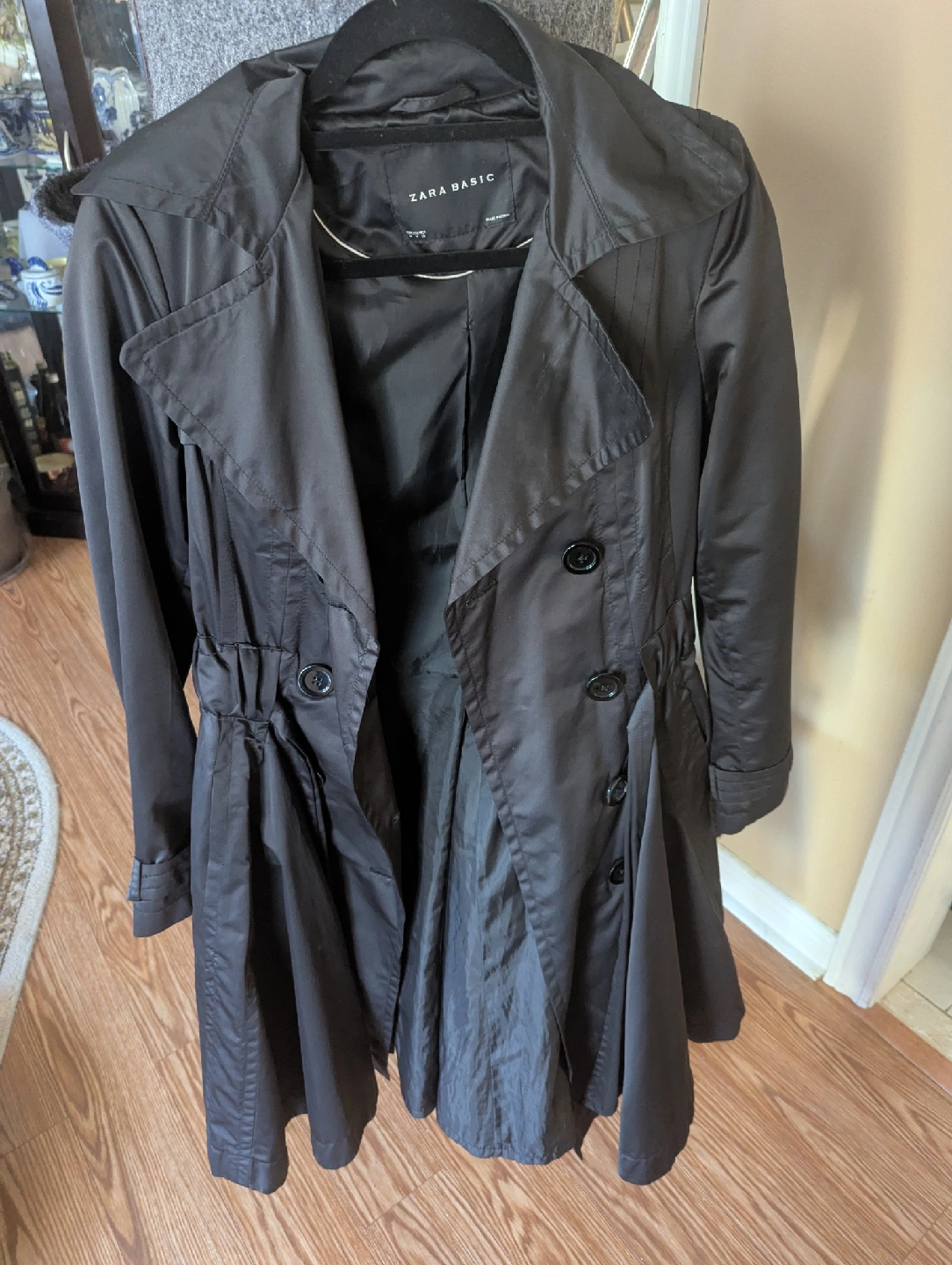 68Selling a stylish black trench coat from Zara Basic! It's in great condition and features a flattering silhouette. Perfect for adding a touch of sophistication to any outfit