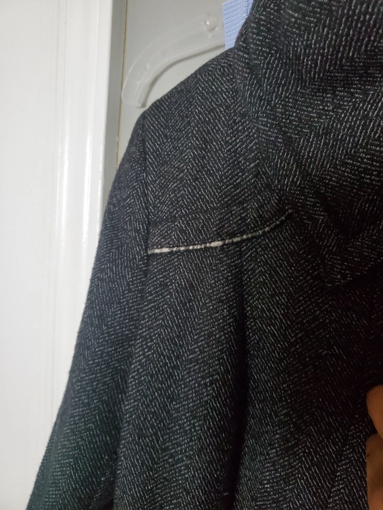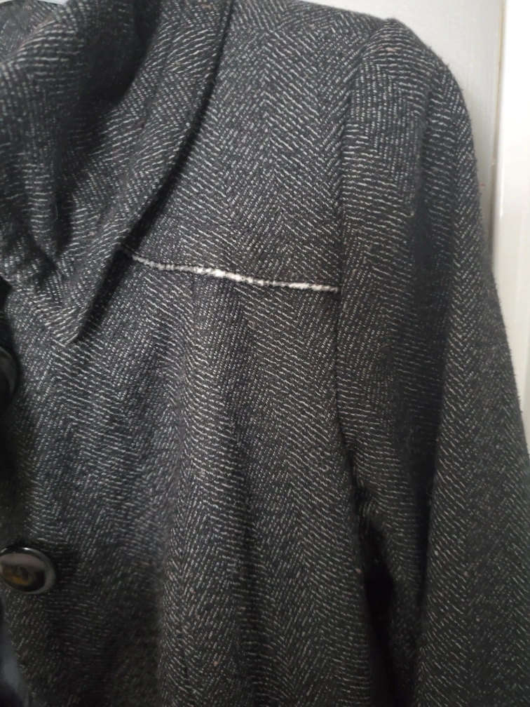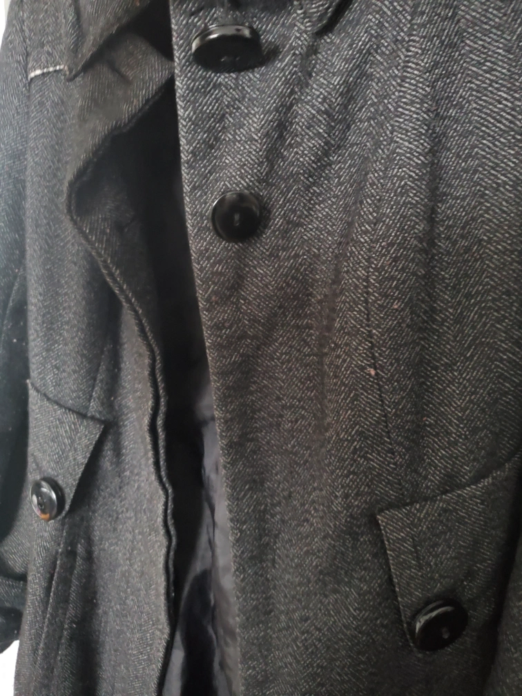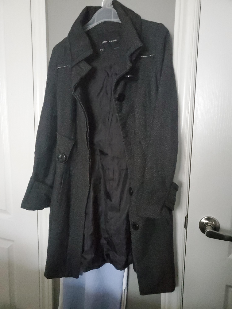 99A stylish Zara Basic coat featuring a classic herringbone pattern! It has some wear and tear and a few buttons missing, one loose, but should be an easy fix for the buttons.