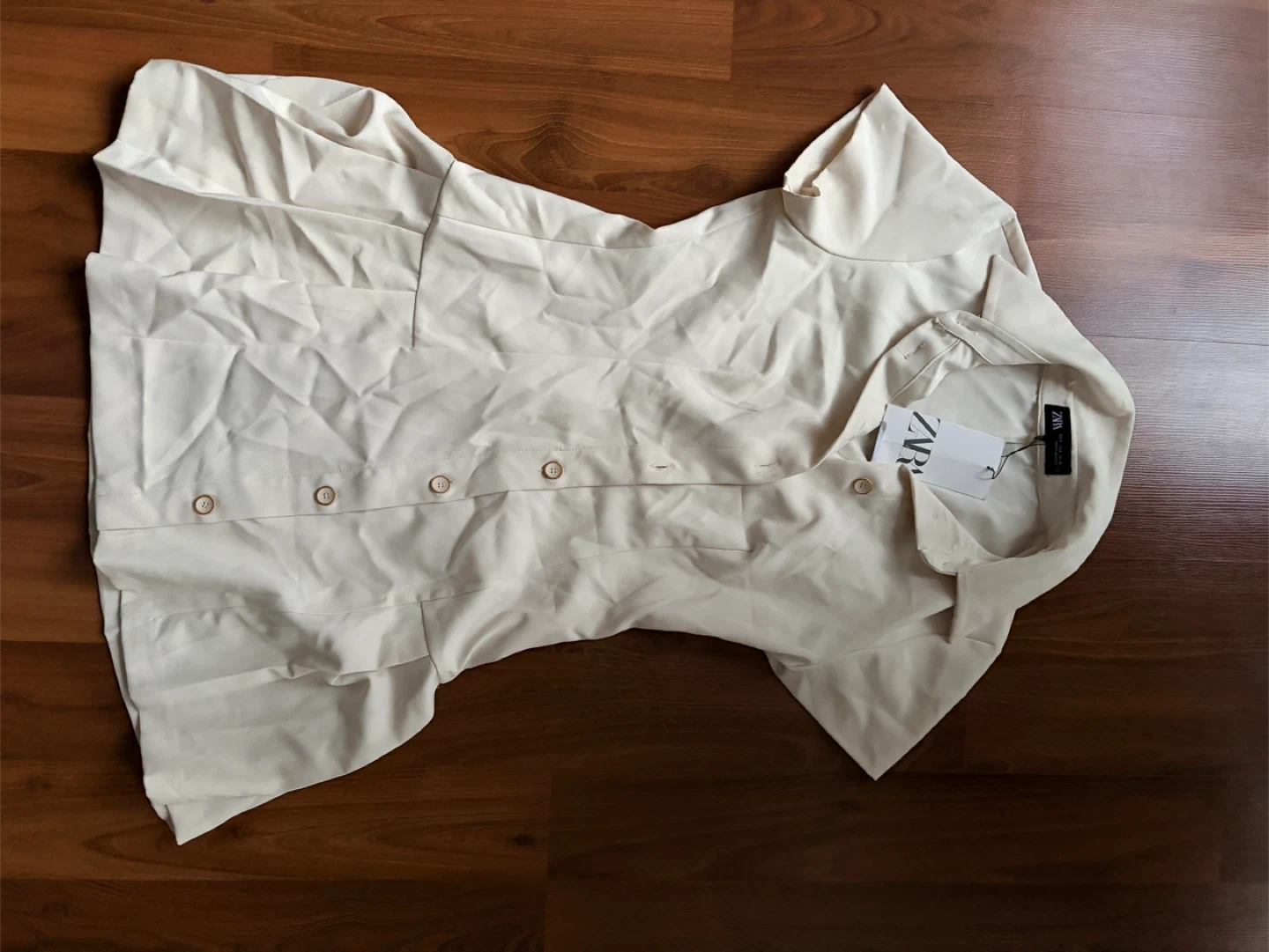 5Selling a Zara beige button-down shirt in size S. It's in great condition and ready for a new home! The neutral colour makes it super versatile for any outfit