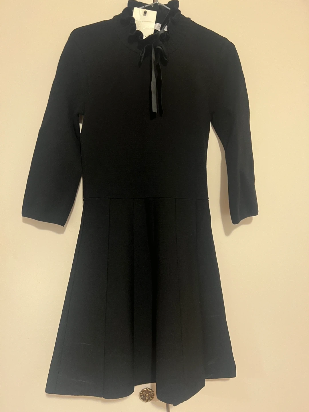 ✨ Elegant and timeless black knit dress from ZARA • Size: S • Condition: Brand New with Tag • Style: Ribbed mock neck with ribbon detail, 3/4 sleeves, and pleated skirt • Perfect for: Fall/Winter, office wear, or evening outings • Material: Soft knit fabric (comfortable and flattering fit)