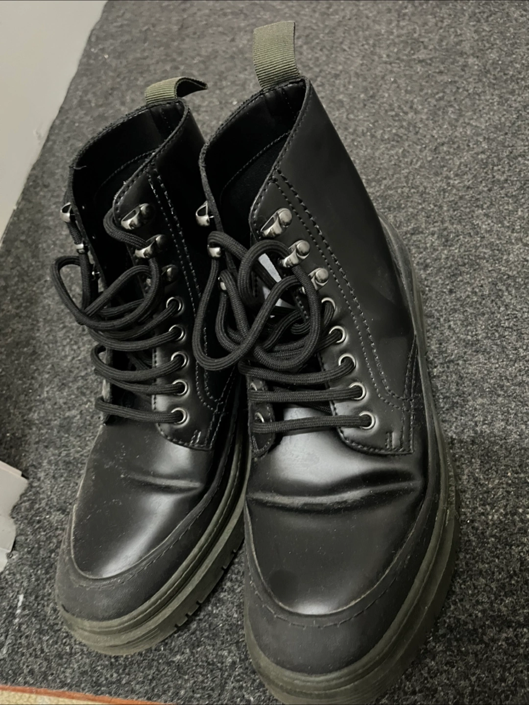 Selling a pair of black lace-up boots. They have a bit of wear, as you can see in the photos, but still have lots of life left in them. Great for everyday wear!