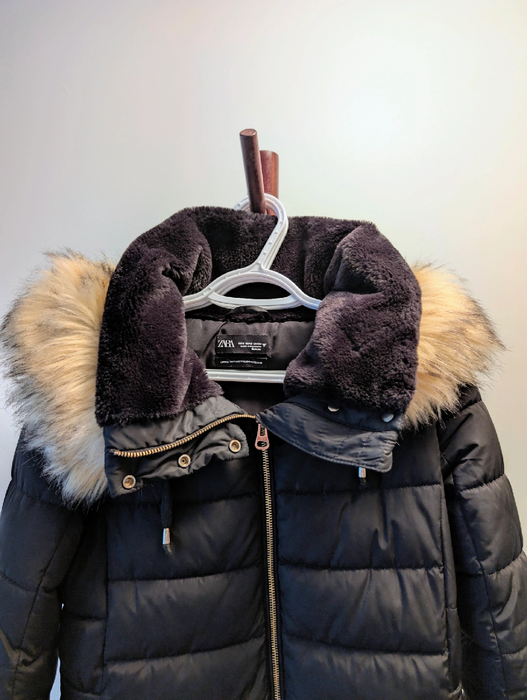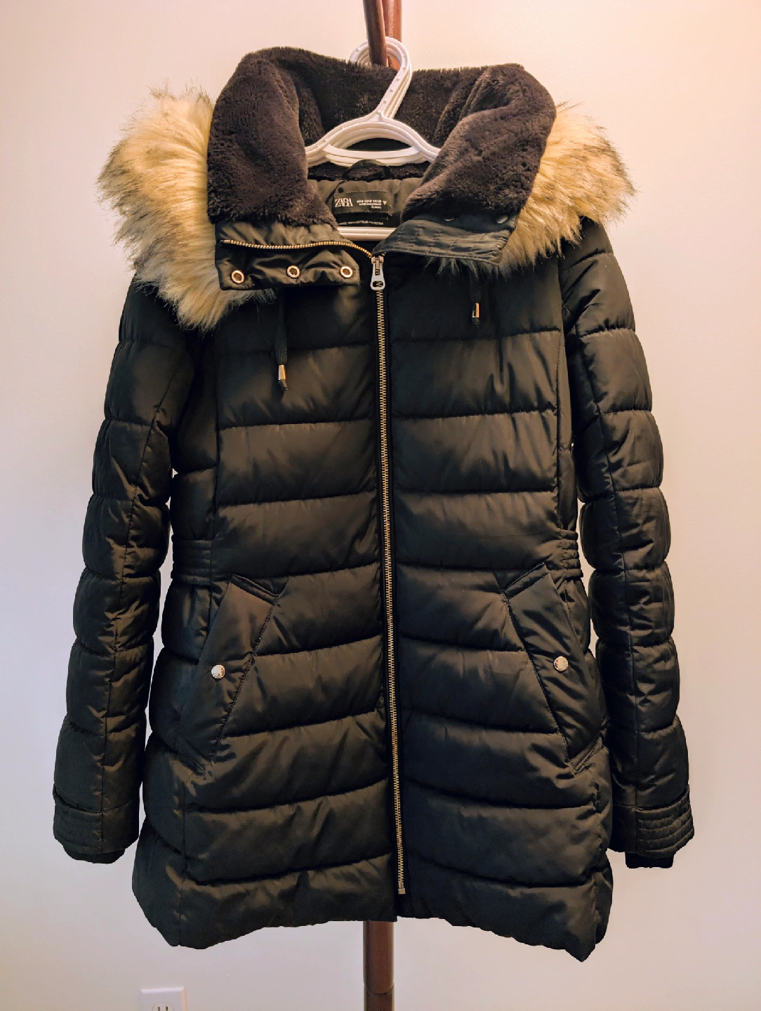 Selling a Zara Puffer Jacket in black. Size: Small Material: 100% polyester Condition: Excellent, gently used, warm and lightweight